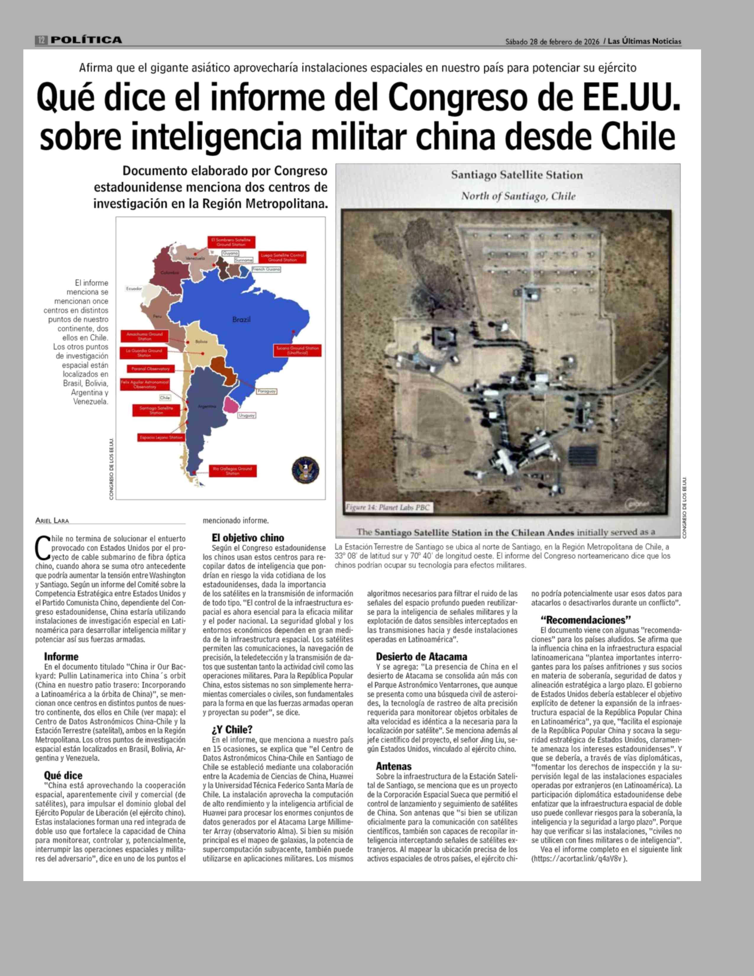 Título: Qué dice el informe del Congreso de EE.UU. sobre inteligencia militar china desde Chile