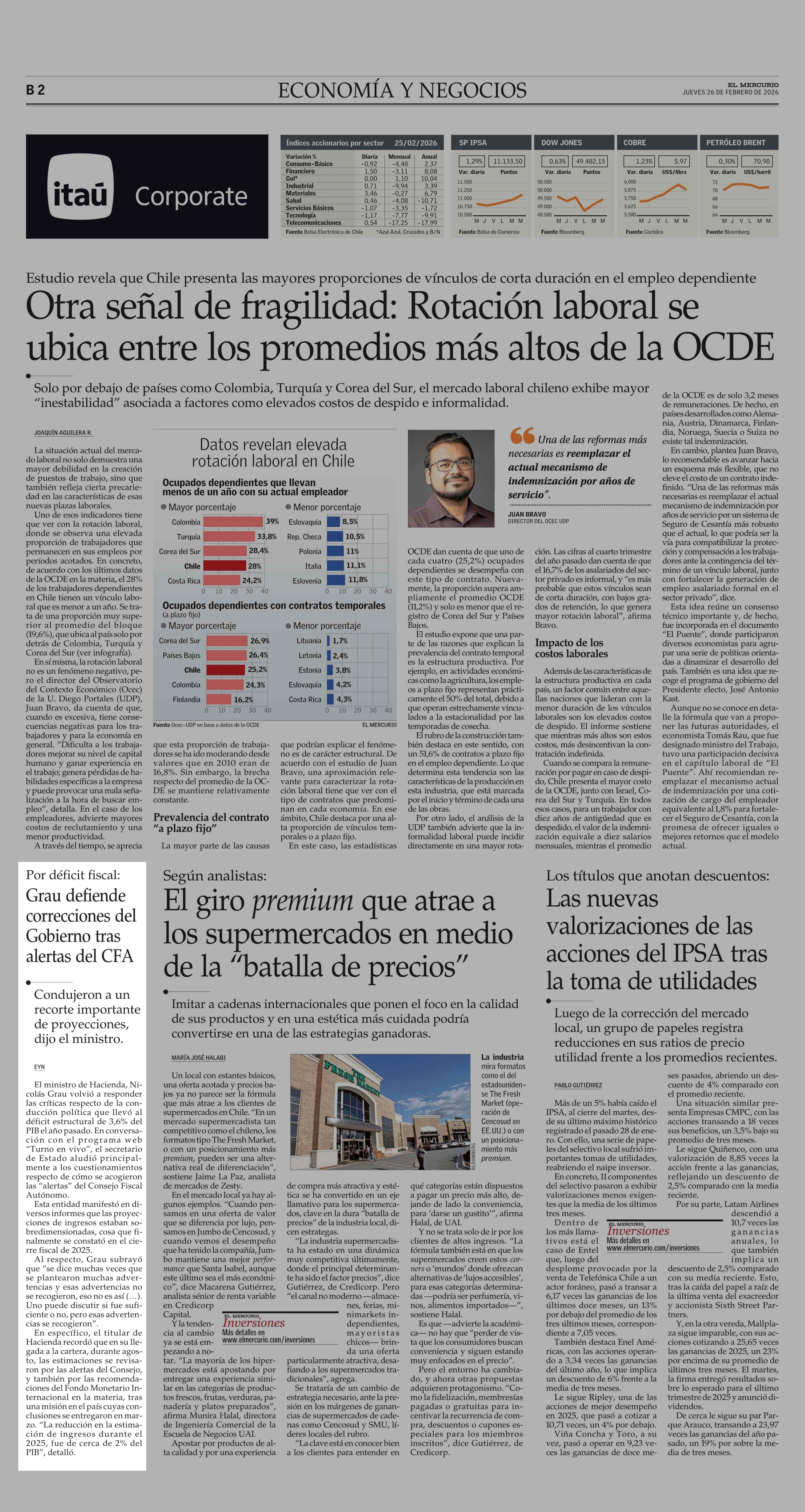 Por déficit fiscal: Grau defiende correcciones del Gobierno tras alertas del CFA 26-02-2026 El Mercurio |