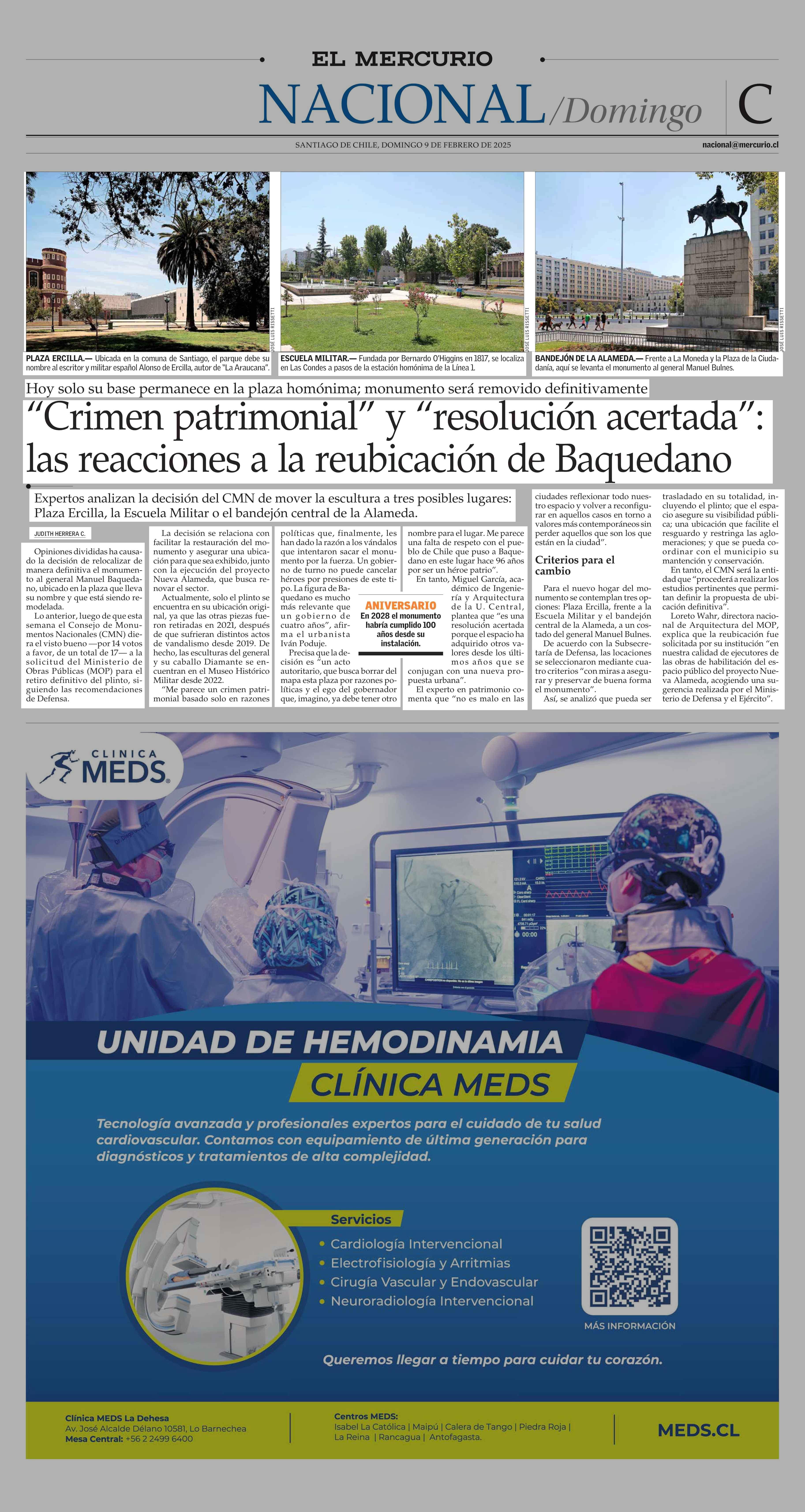 “Crimen patrimonial” y “resolución acertada”: las reacciones a la reubicación de Baquedano 09-02-2025 El Mercurio |