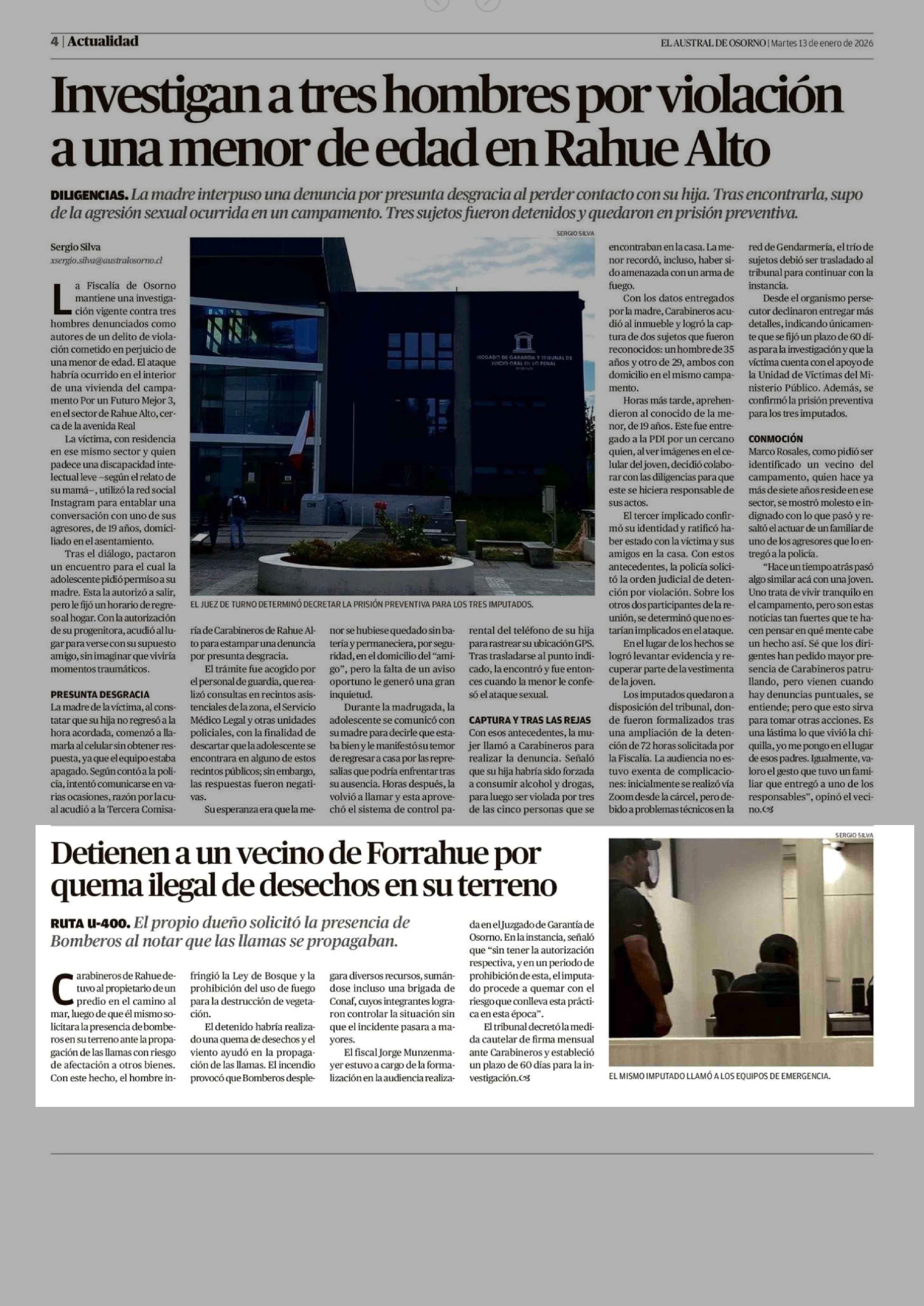 Detienen a un vecino de Forrahue por quema ilegal de desechos en su terreno 13-01-2026 El Austral de Osorno |