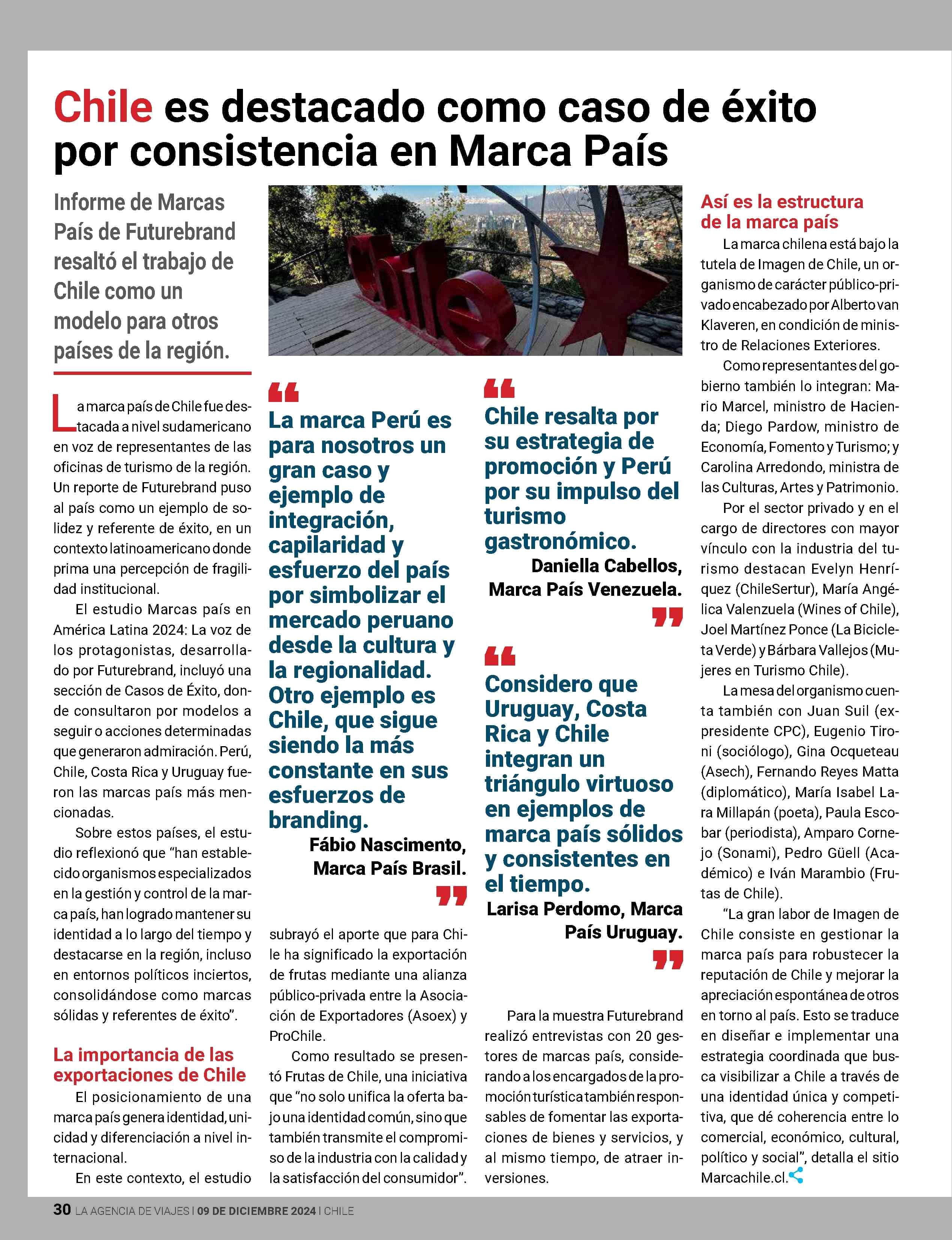 Chile es destacado como caso de éxito por consistencia en Marca País 13-12-2024 Revista La Agencia de Viajes |