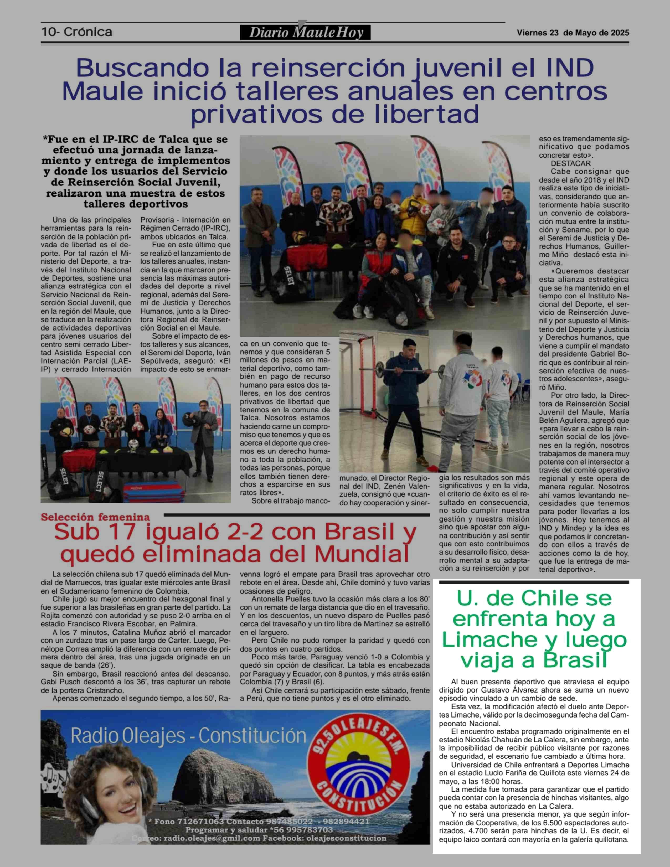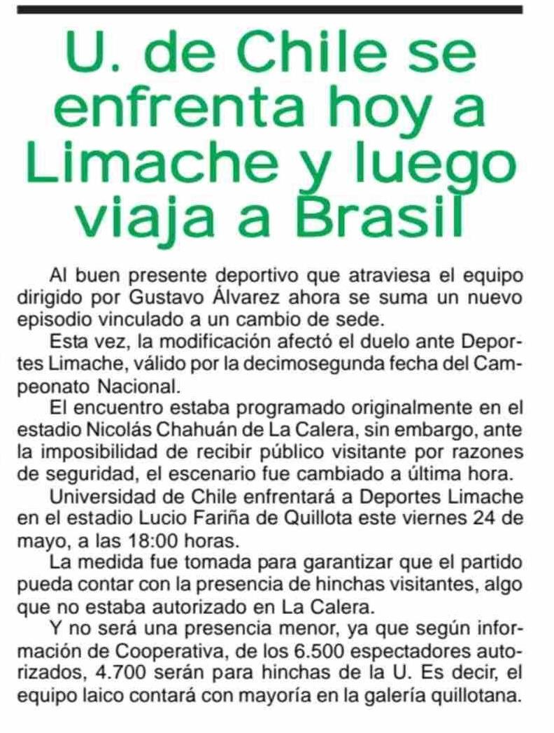 U. de Chile se enfrenta hoy a Limache lego viaja a Brasil 23-05-2025 Maule Hoy |