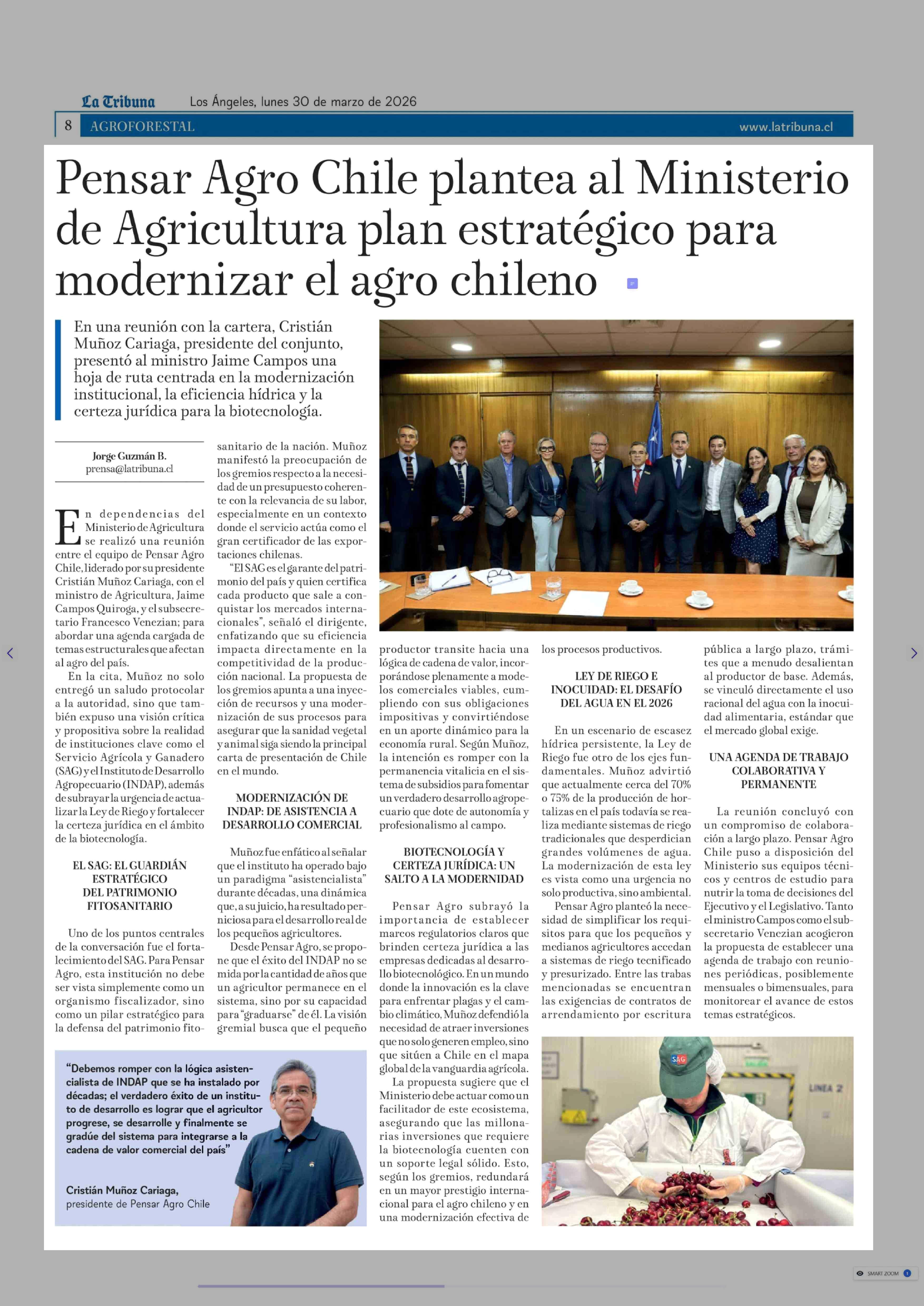 Título: Pensar Agro Chile plantea al Ministerio de Agricultura plan estratégico para modernizar el agro chileno
