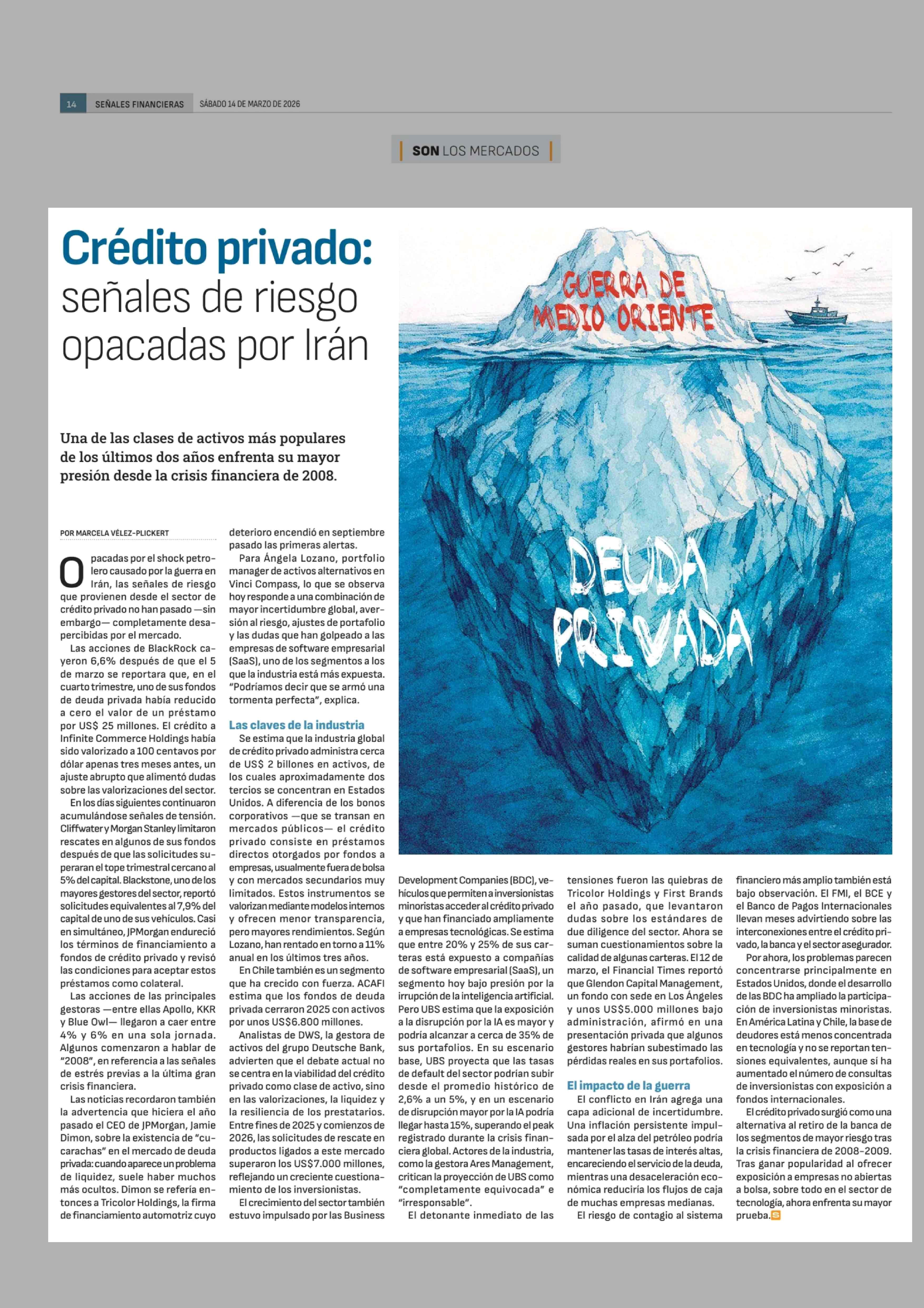 Crédito privado: señales de riesgo opacadas por Irán 14-03-2026 Diario Financiero |