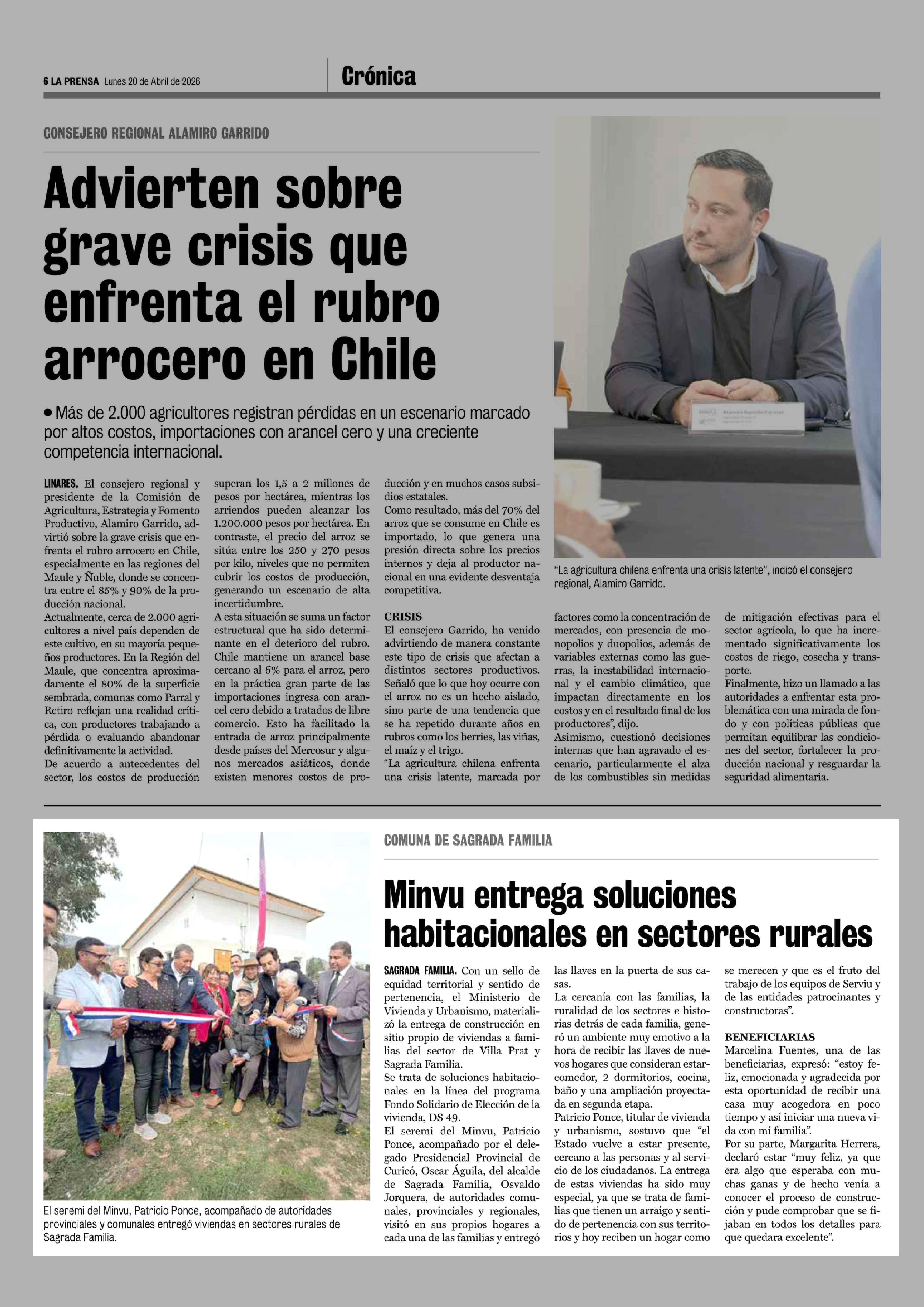 | Fecha: | 20-04-2026 | Sector: | Noticia general | Región: | Región del Maule |