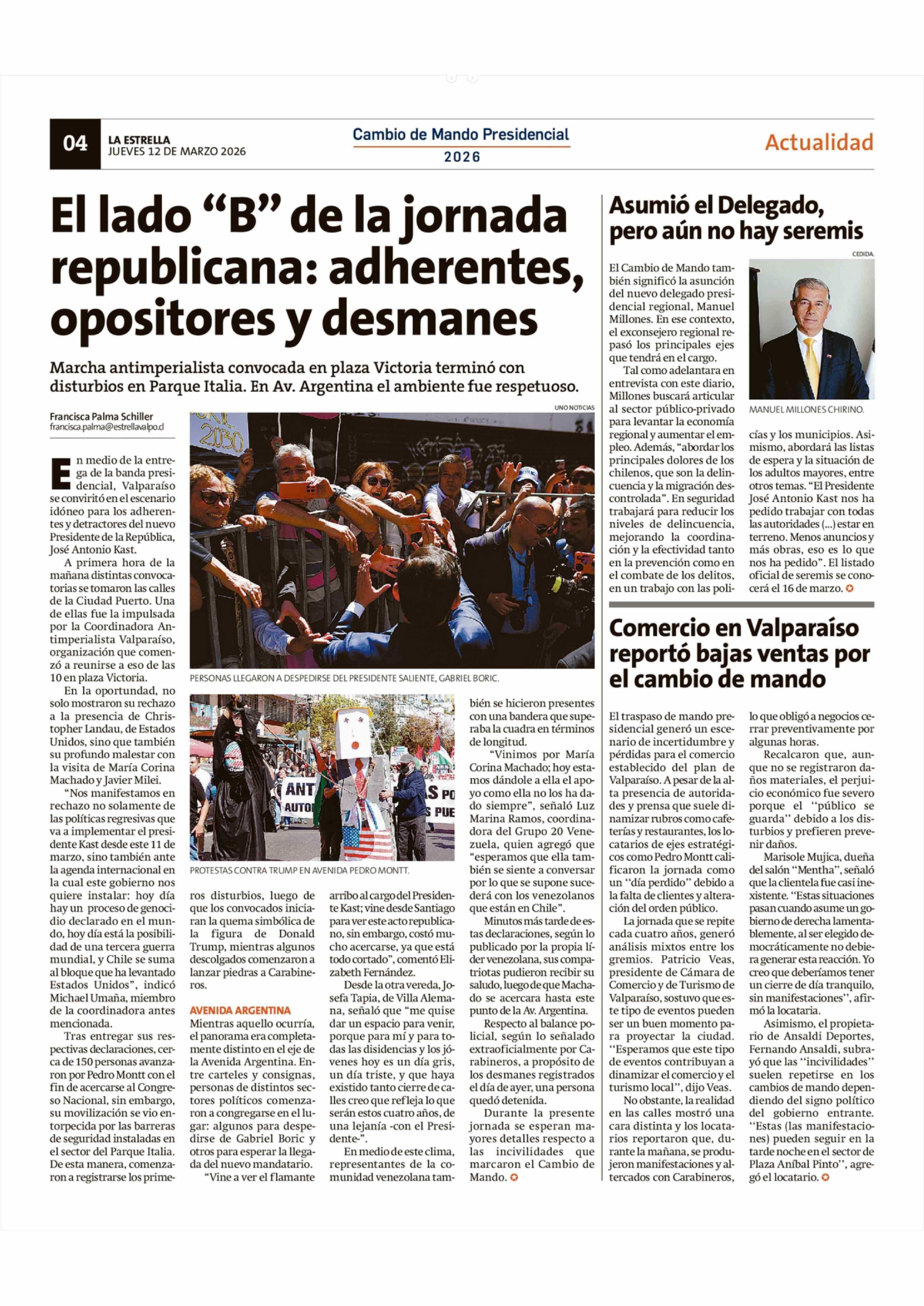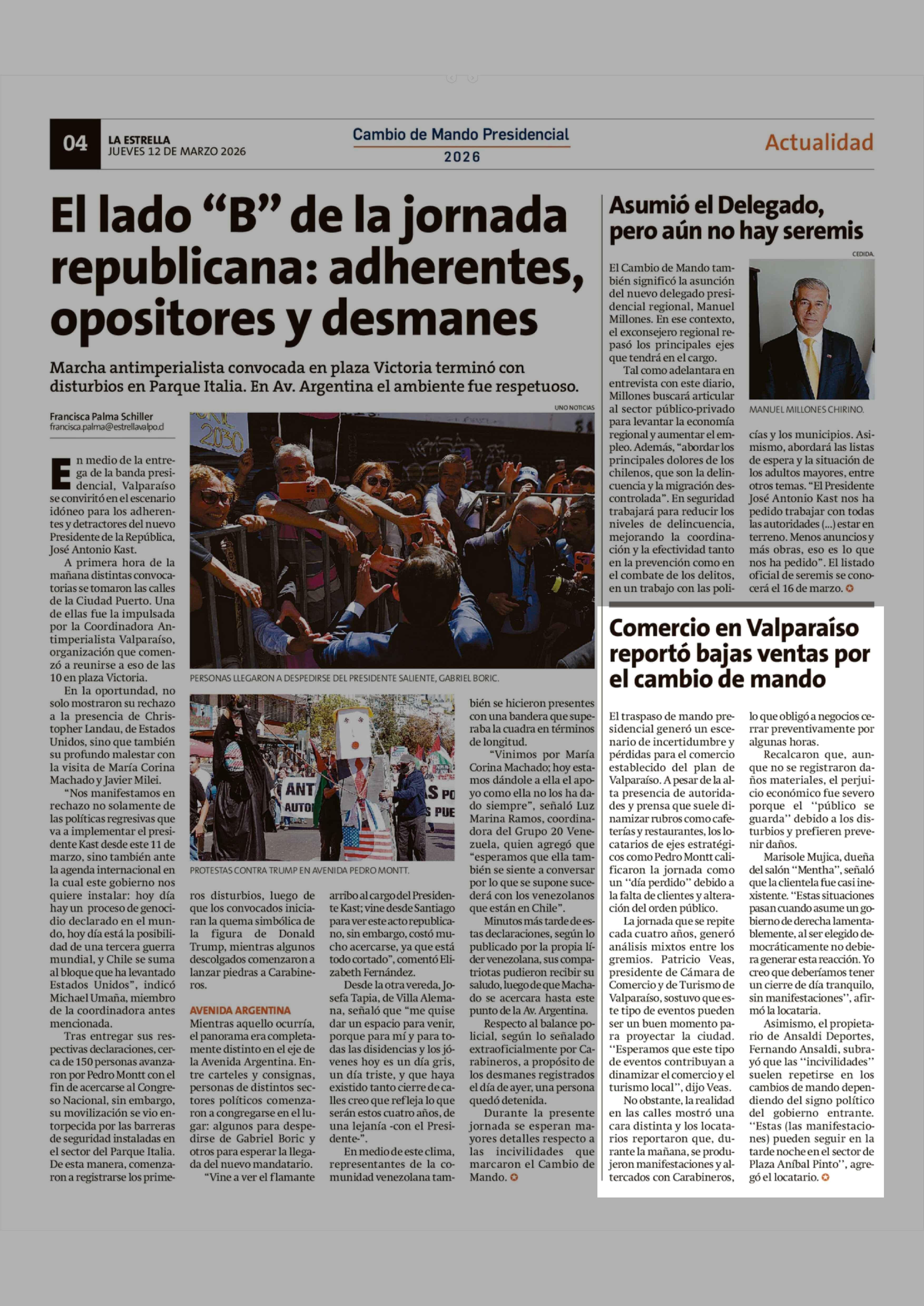 Comercio en Valparaíso reportó bajas ventas por el cambio de mando 12-03-2026 La Estrella de Valparaíso |