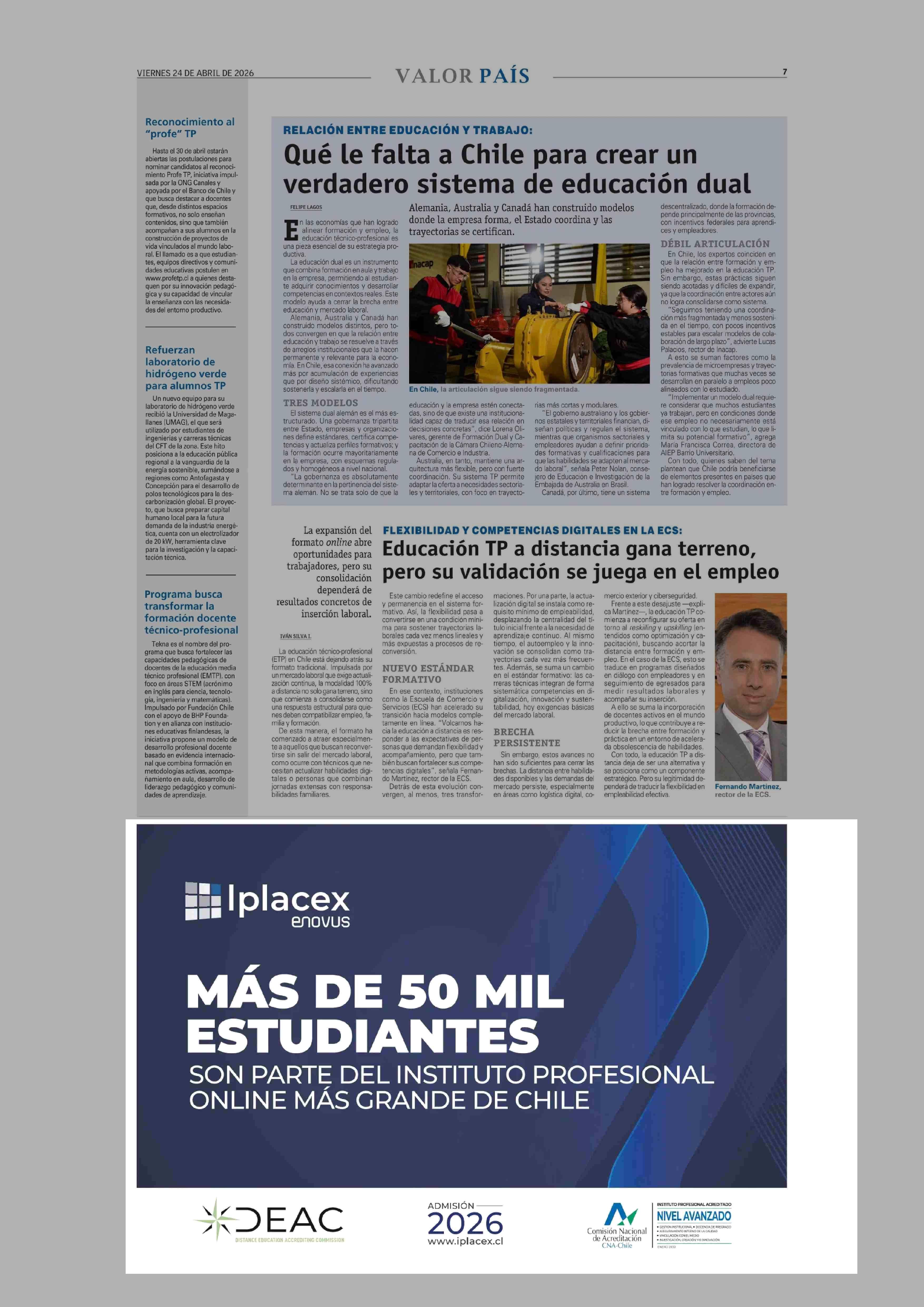 AVISO EDUCACIÓN: IPLACEX 24-04-2026 El Mercurio |