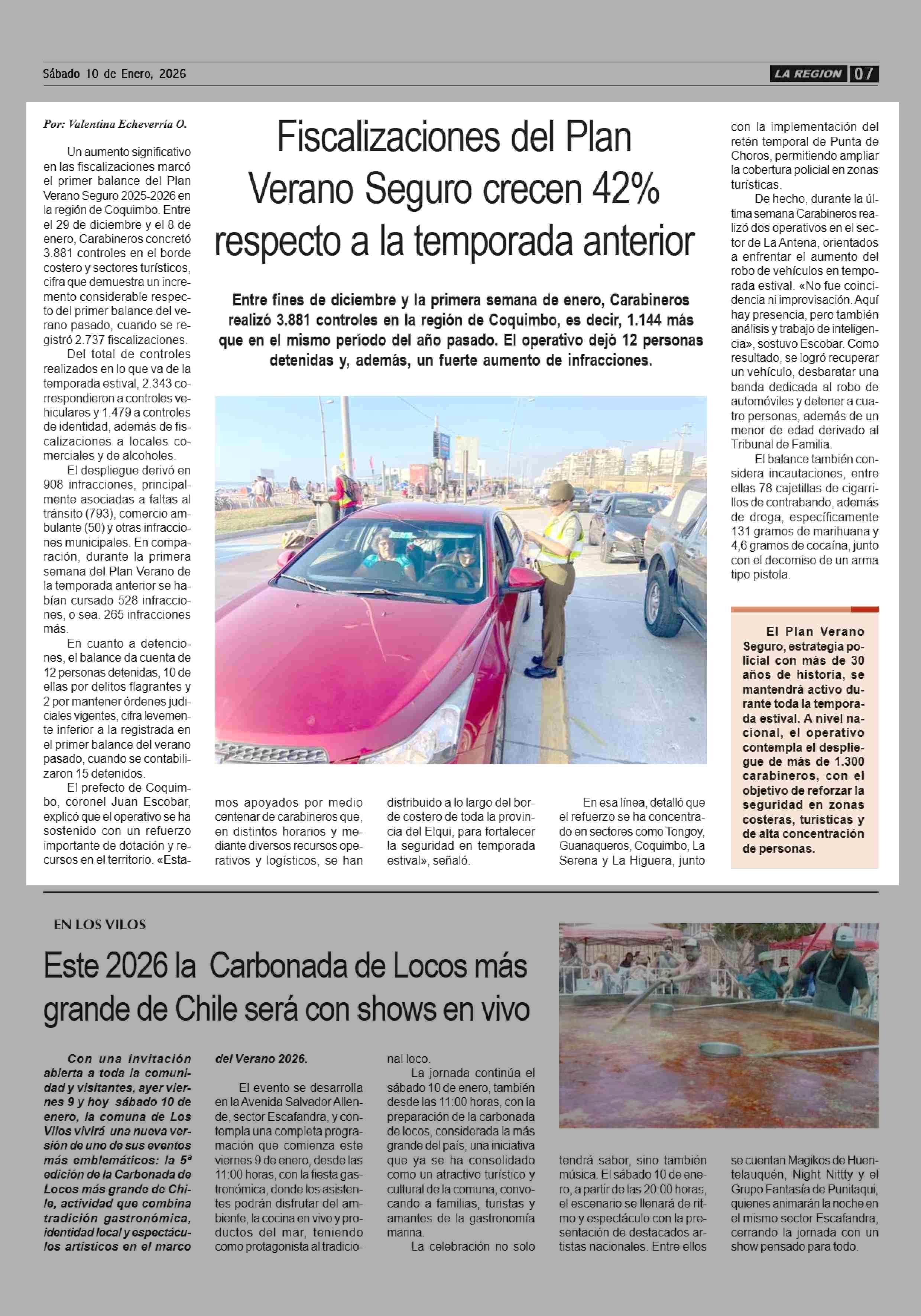 Título: Fiscalizaciones del Plan Verano Seguro crecen 42% respecto a la temporada anterior