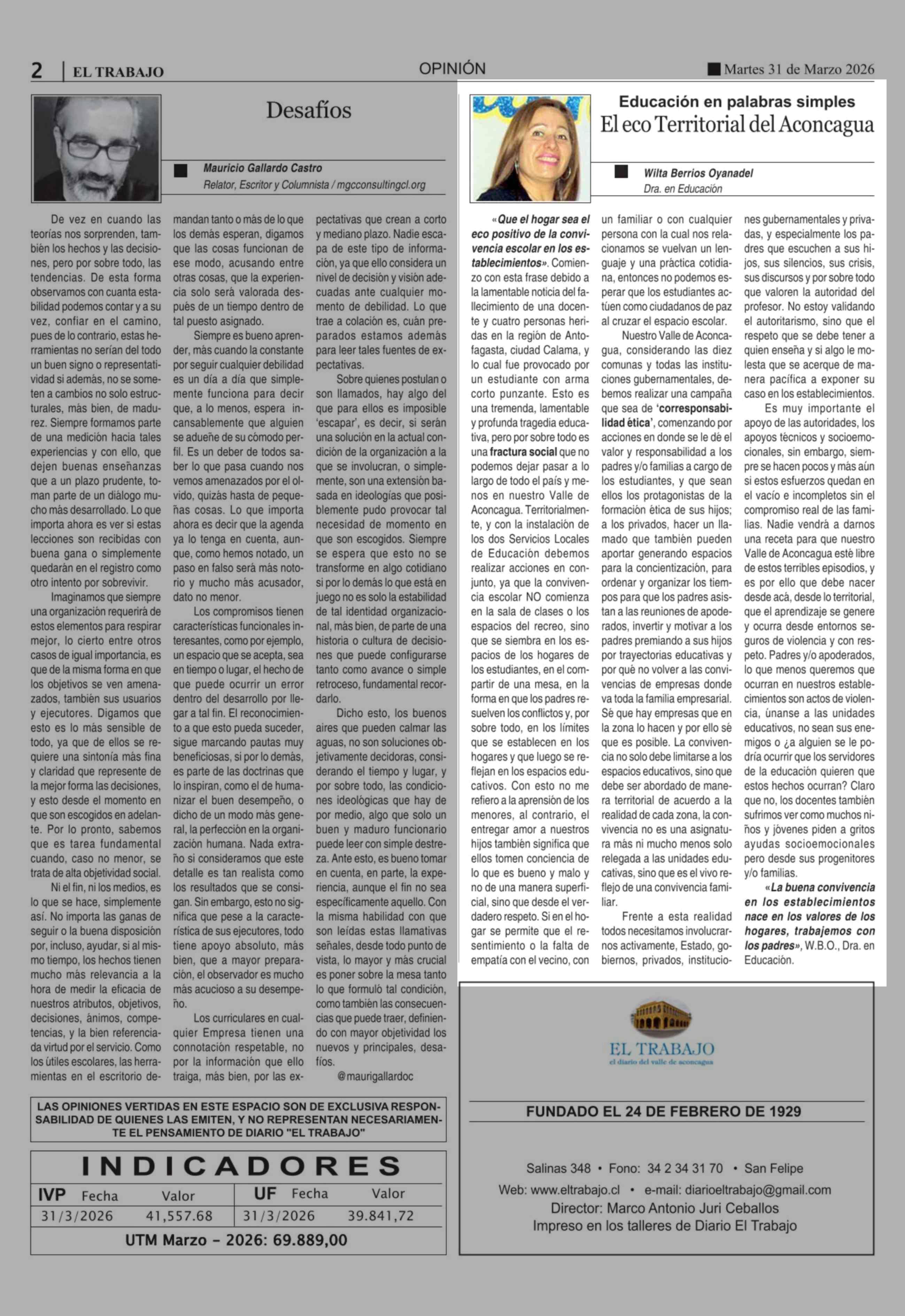 Fecha: 31-03-2026 Sector: Columnas de Opinión Región: Región de Valparaíso