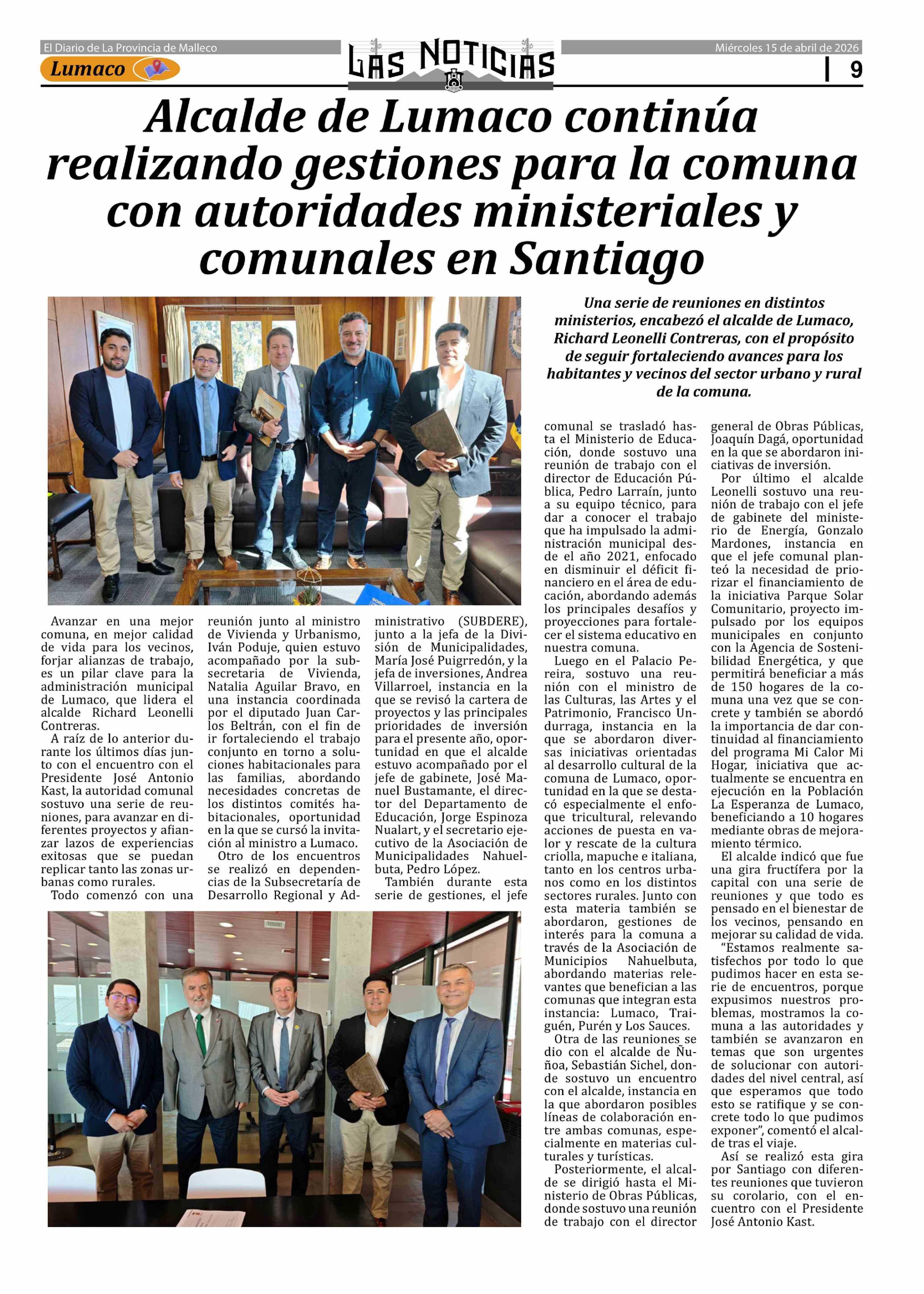 Título: Alcalde de Lumaco continúa realizando gestiones para la comuna con autoridades ministeriales y comunales en Santiago