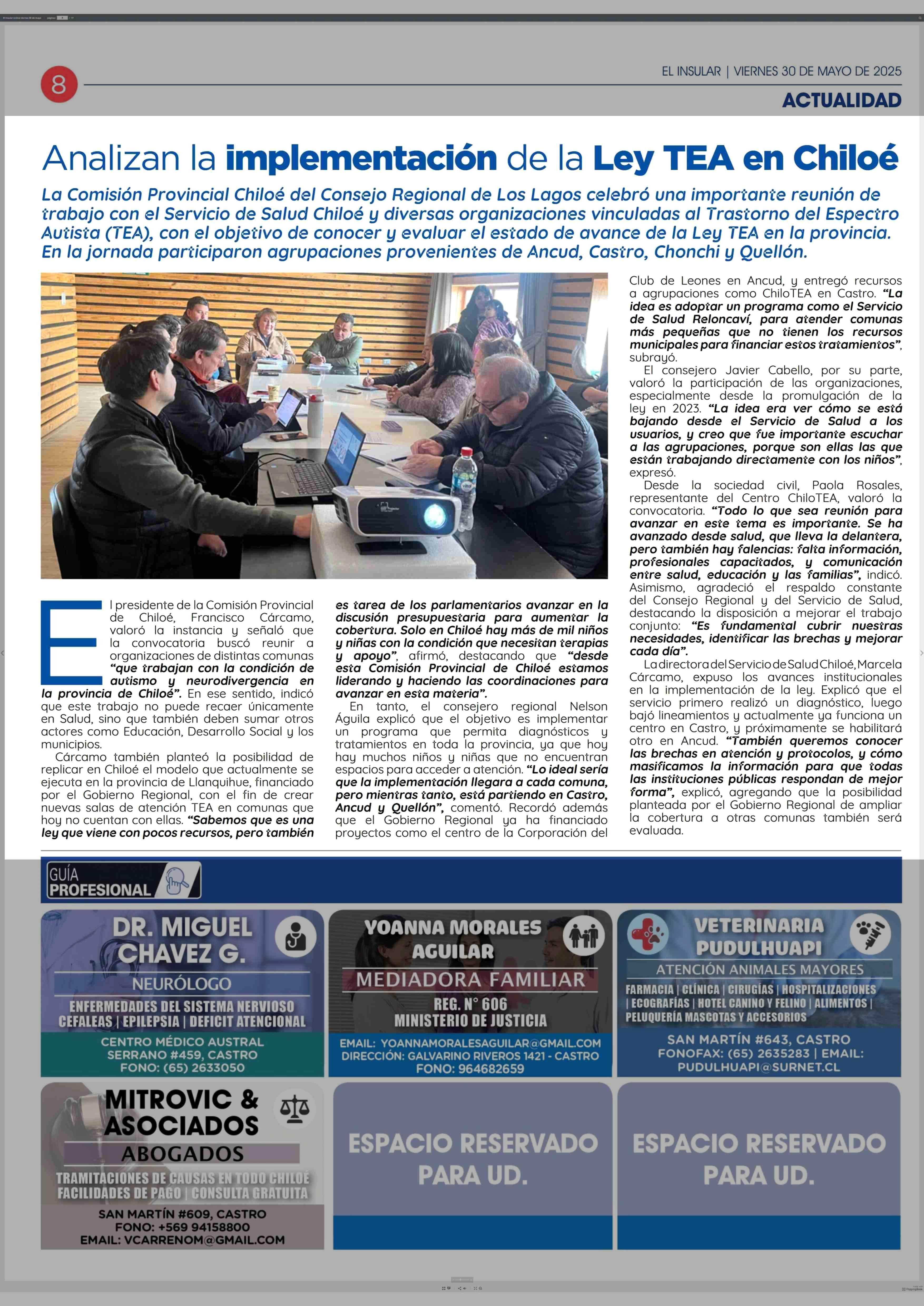 Analizan la implementación de la Ley TEA en Chiloé 30-05-2025 El Insular |