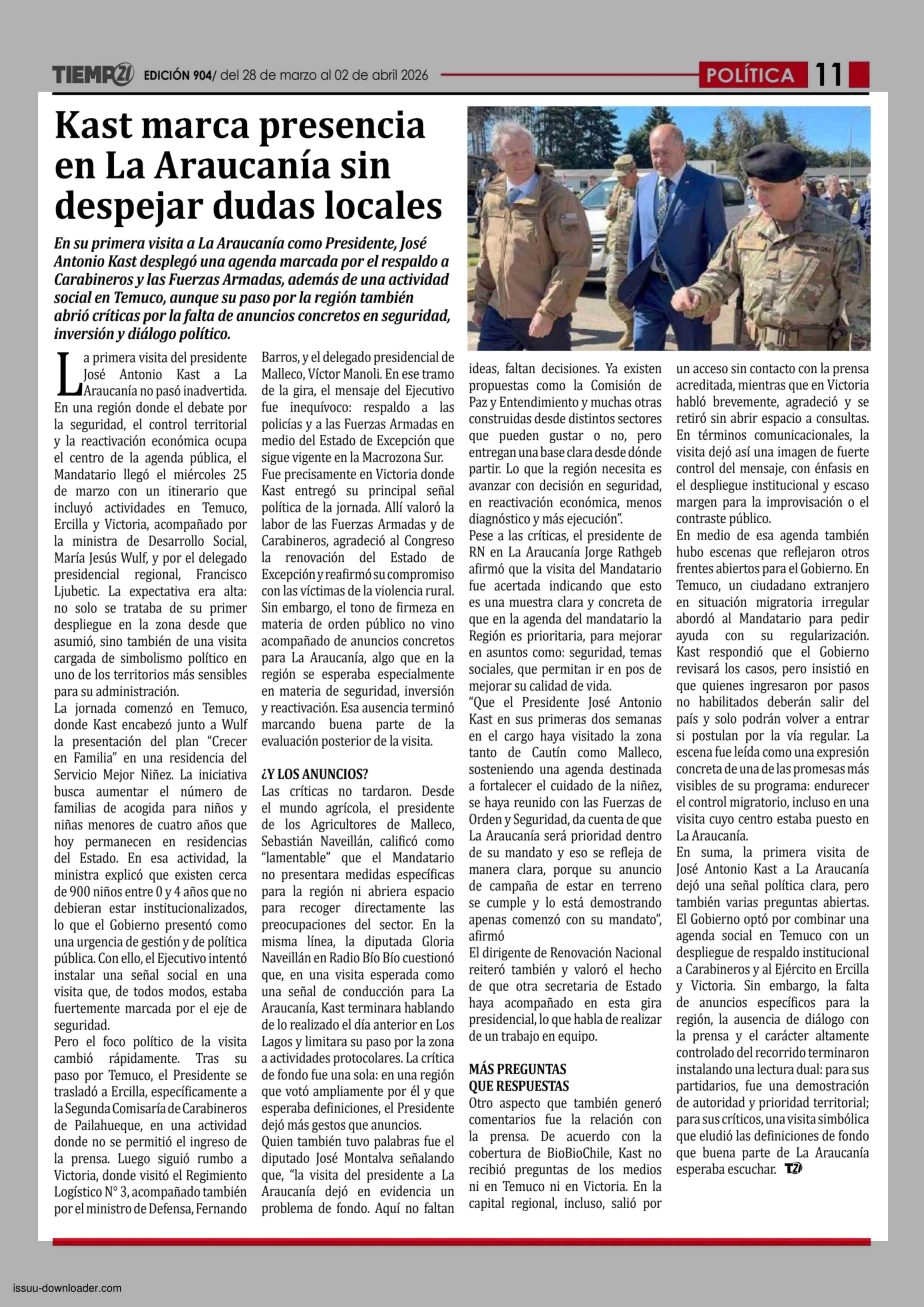 Título: Kast marca presencia en La Araucanía sin despejar dudas locales