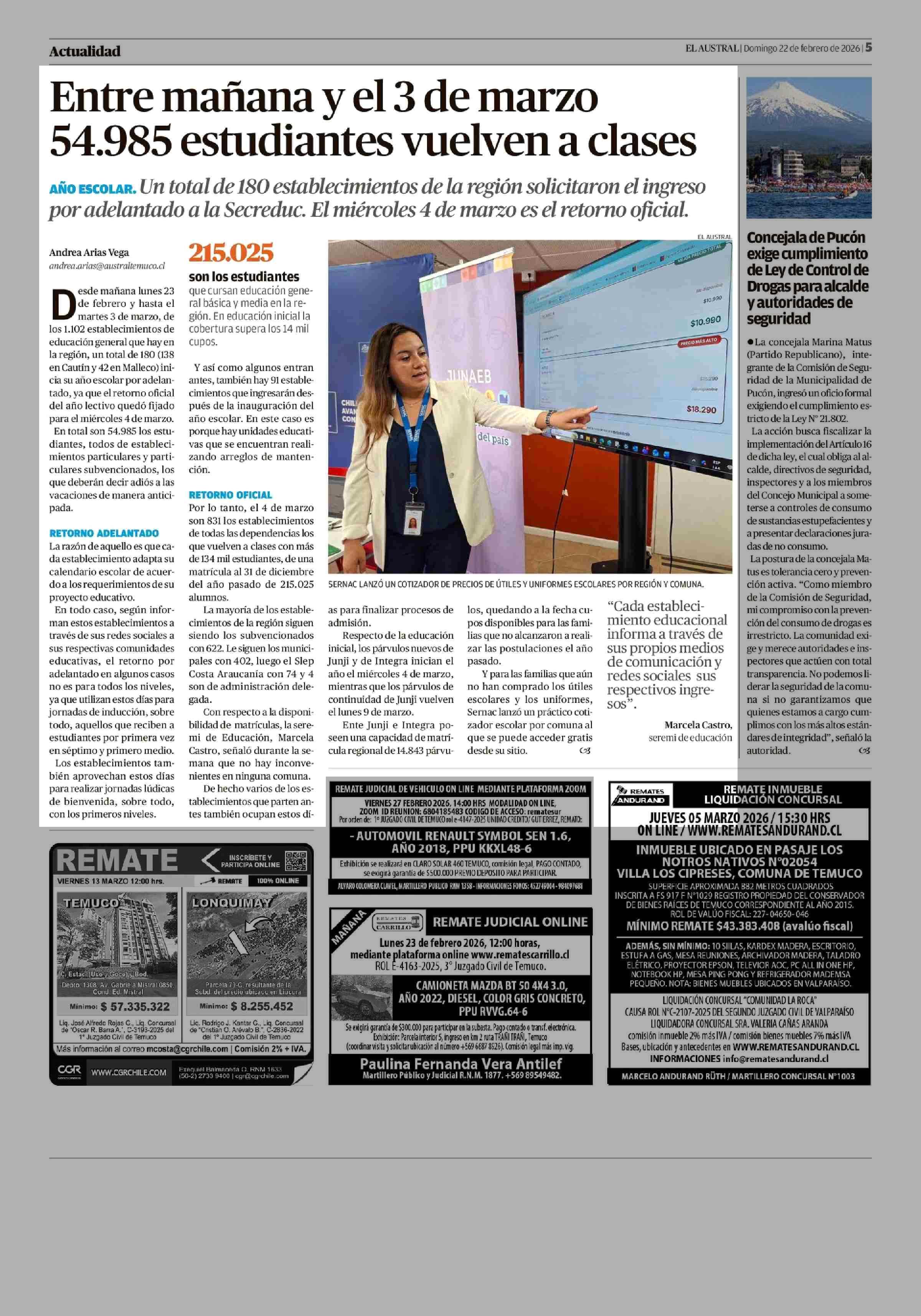 Fecha: 22-02-2026 Sector: Noticia general Región: Región de la Araucanía
