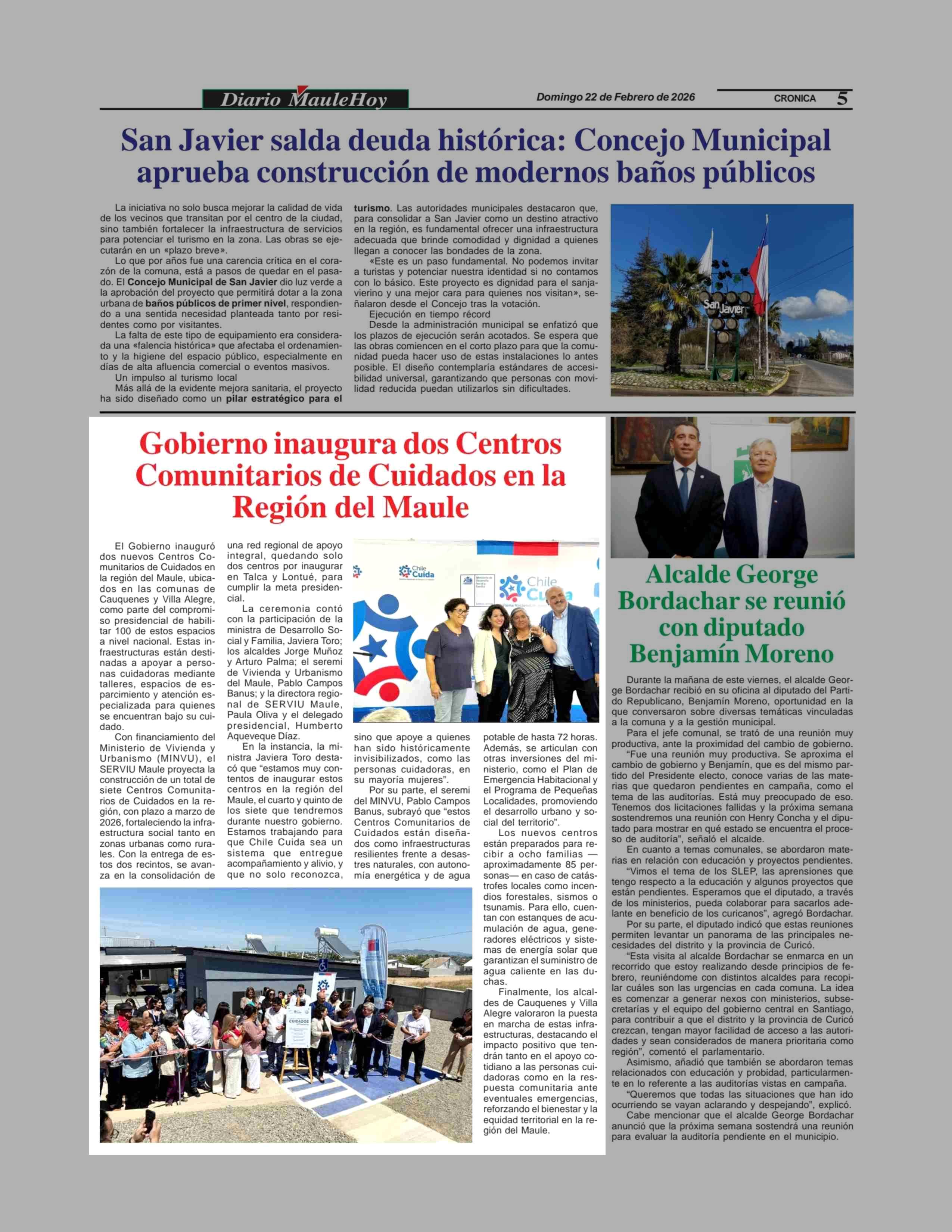 Gobierno inaugura dos Centros Comunitarios de Cuidados en la Región del Maule 22-02-2026 Maule Hoy |