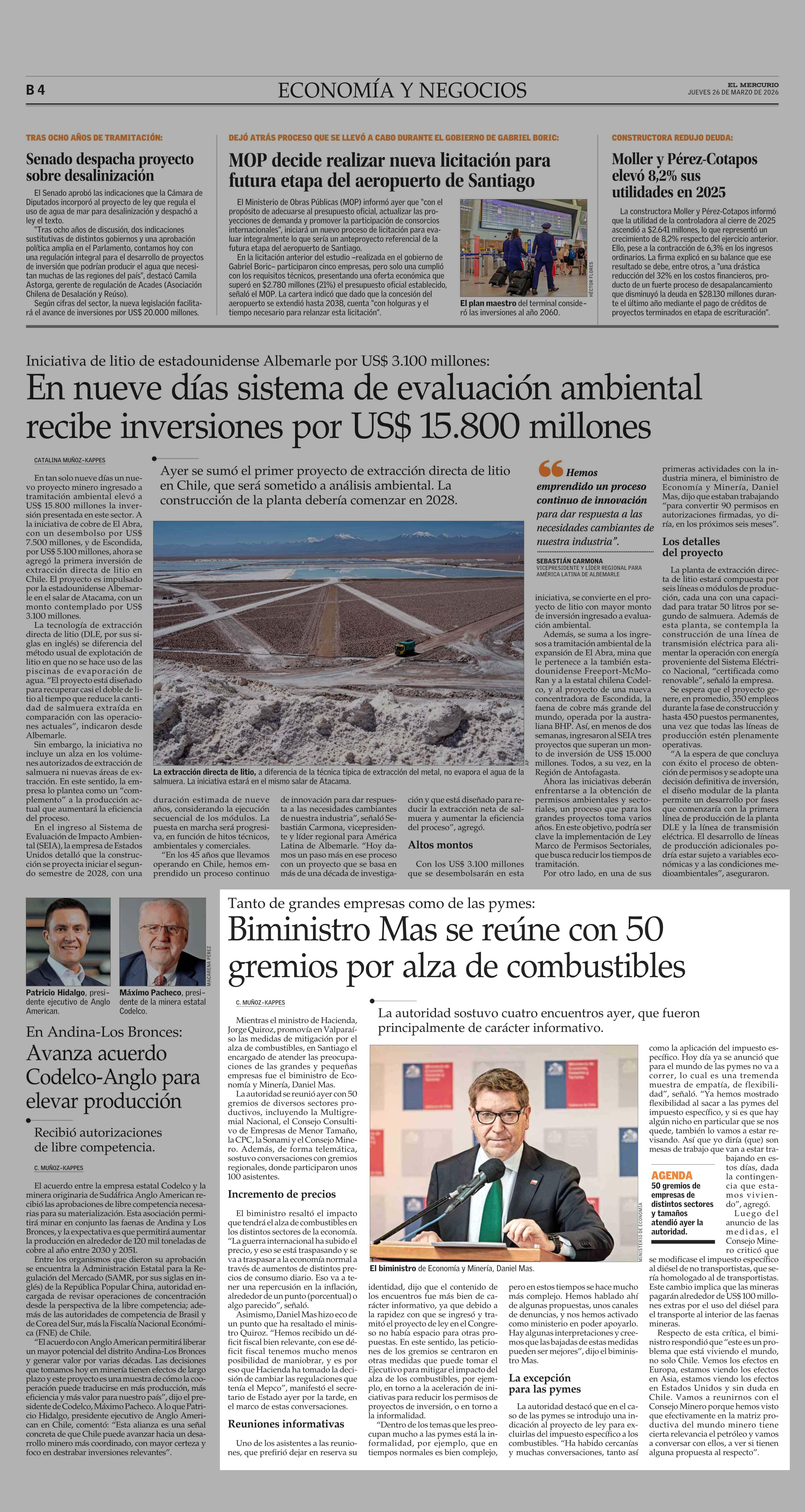 Biministro Mas se reúne con 50 gremios por alza de combustibles 26-03-2026 El Mercurio |