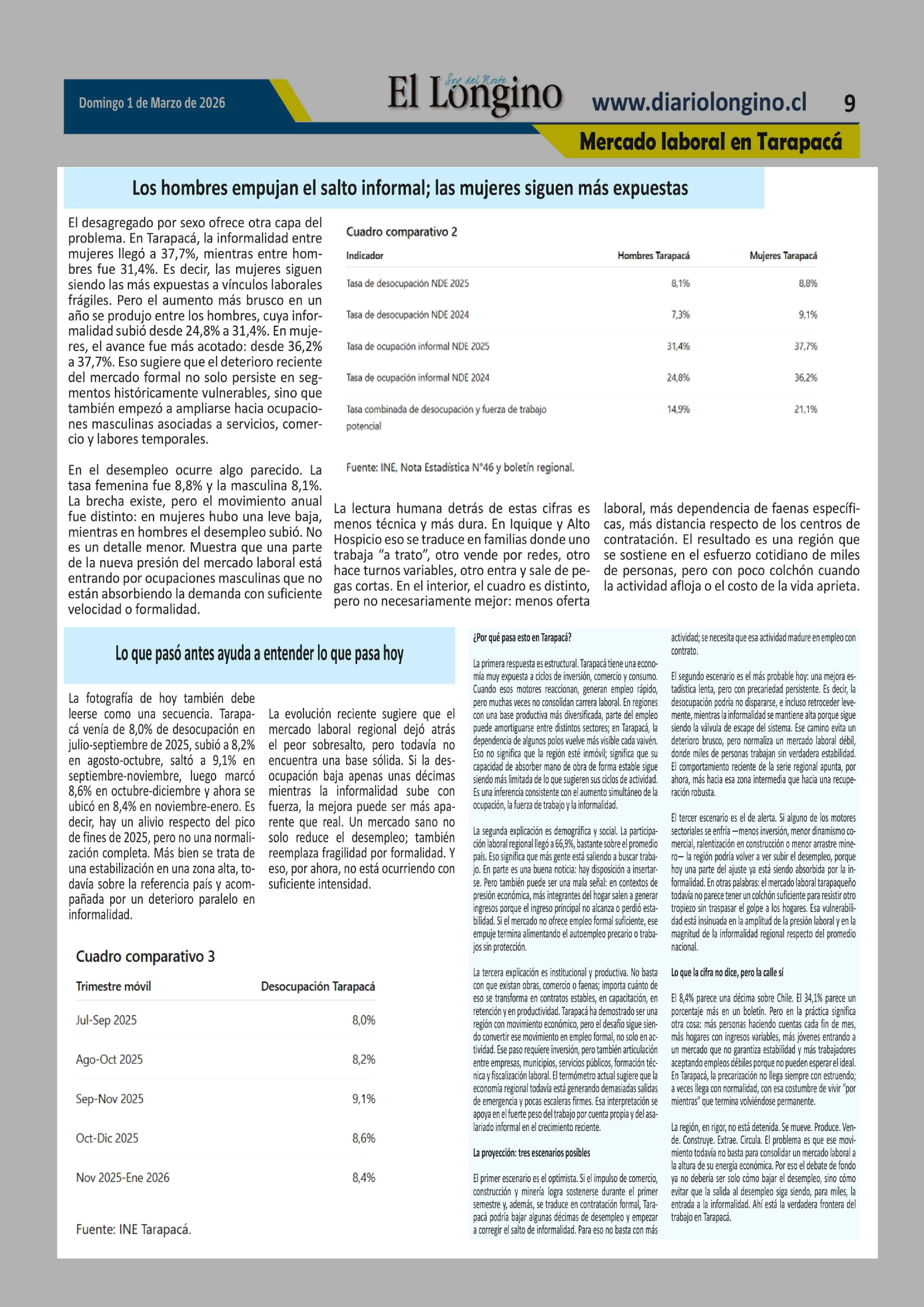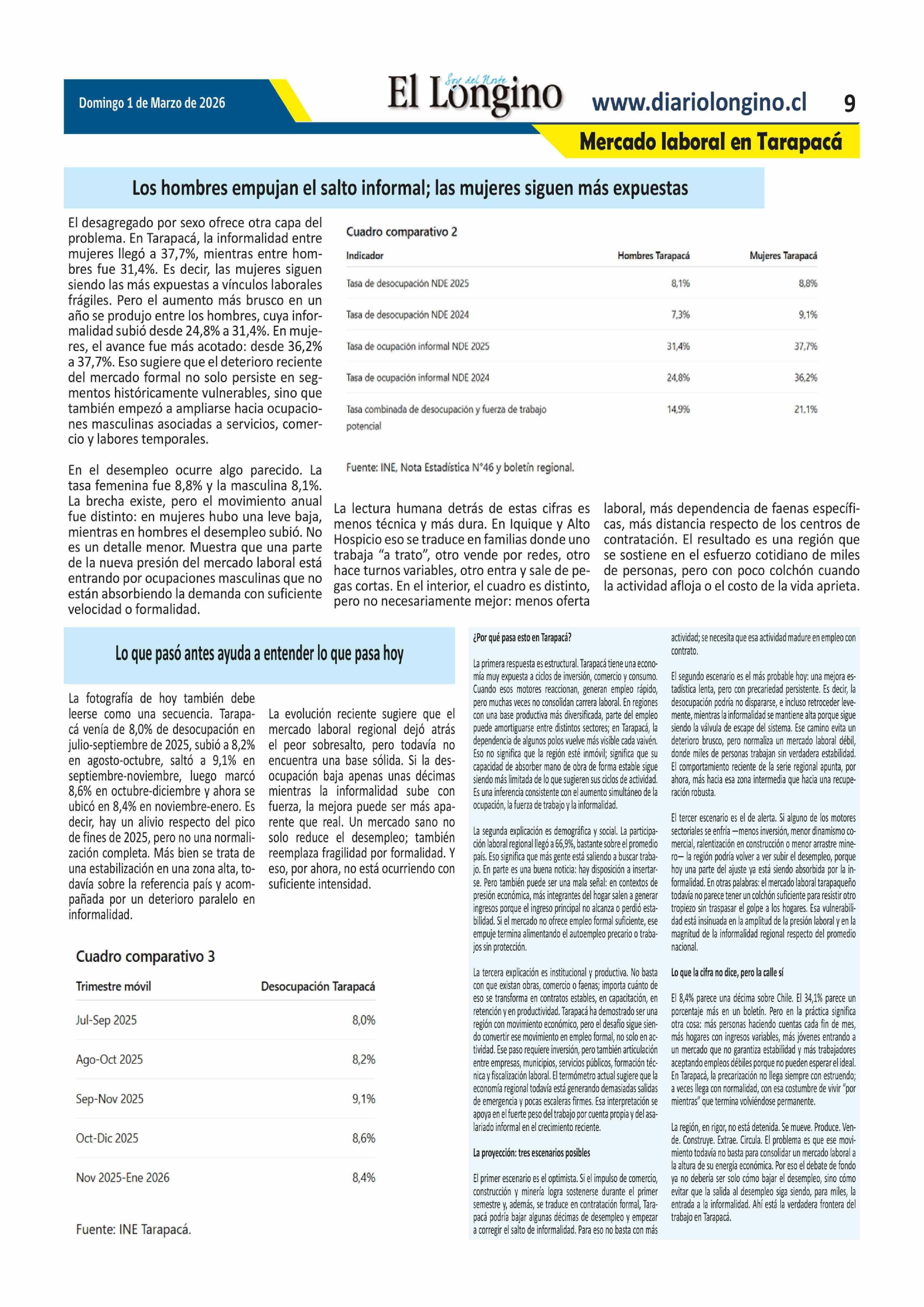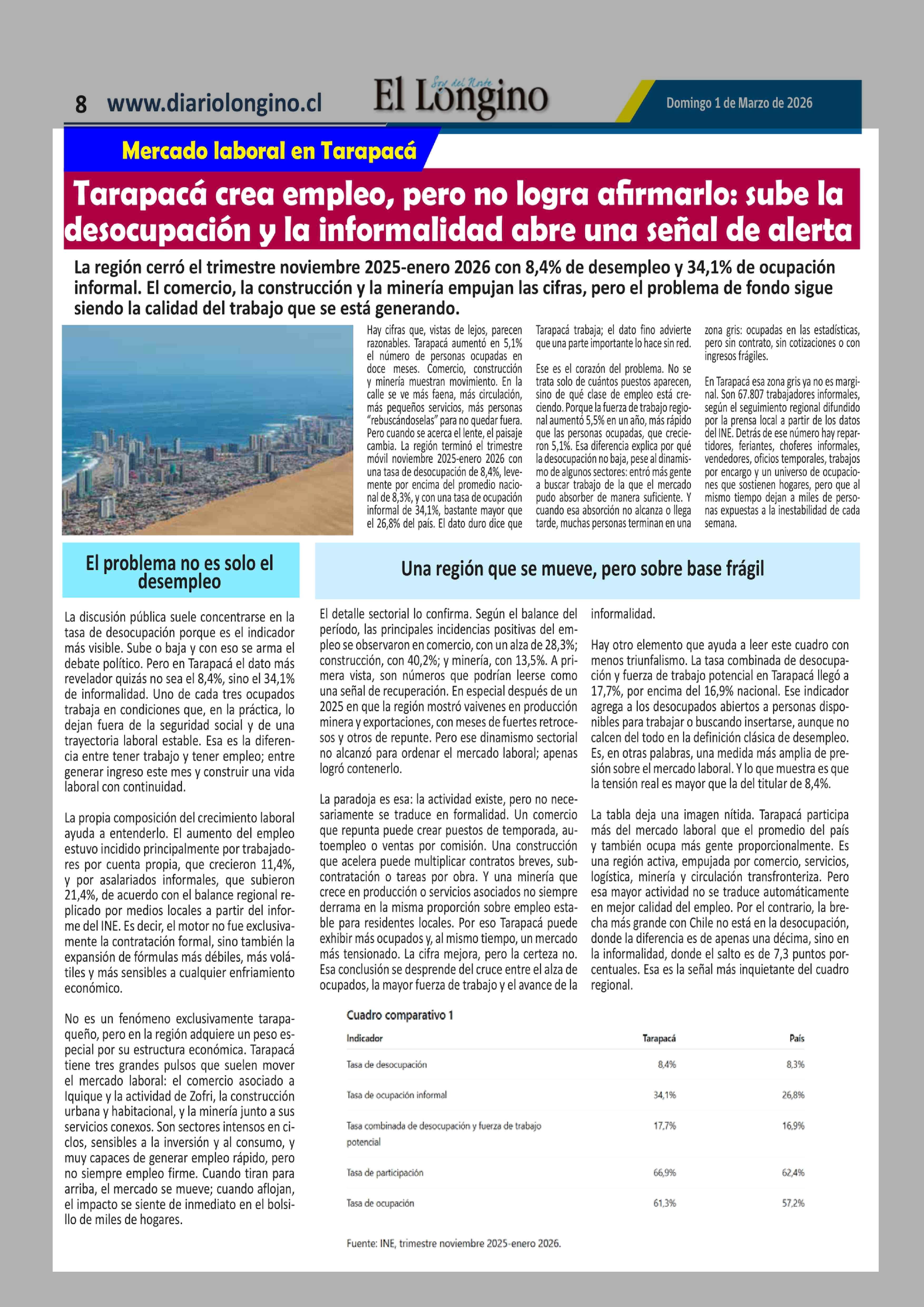 Título: Tarapacá crea empleo, pero no logra afirmarlo: sube la desocupación y la informalidad abre una señal de alerta