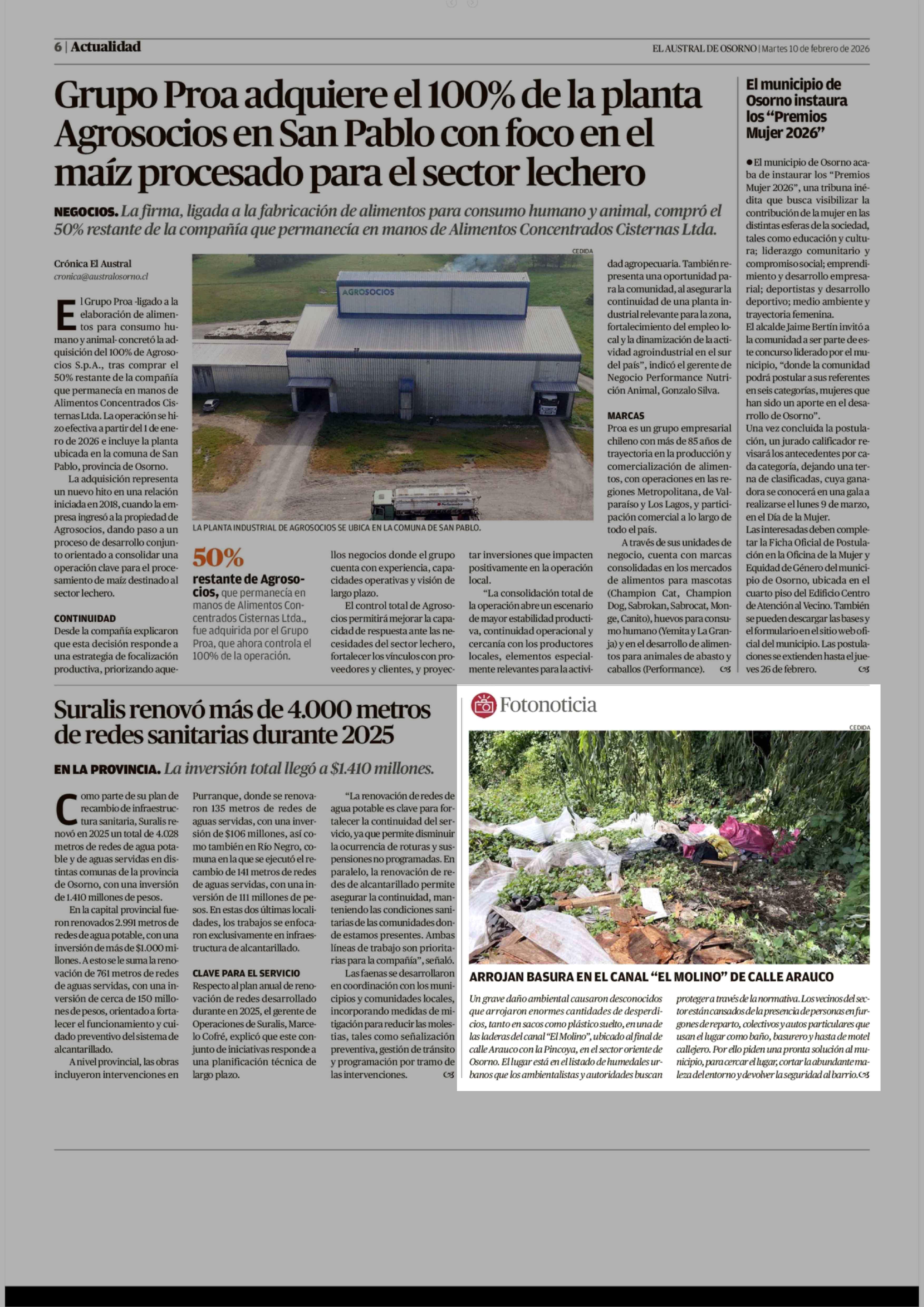 ARROJAN BASURA EN EL CANAL "EL MOLINO" DE CALLE ARAUCO 10-02-2026 El Austral de Osorno |