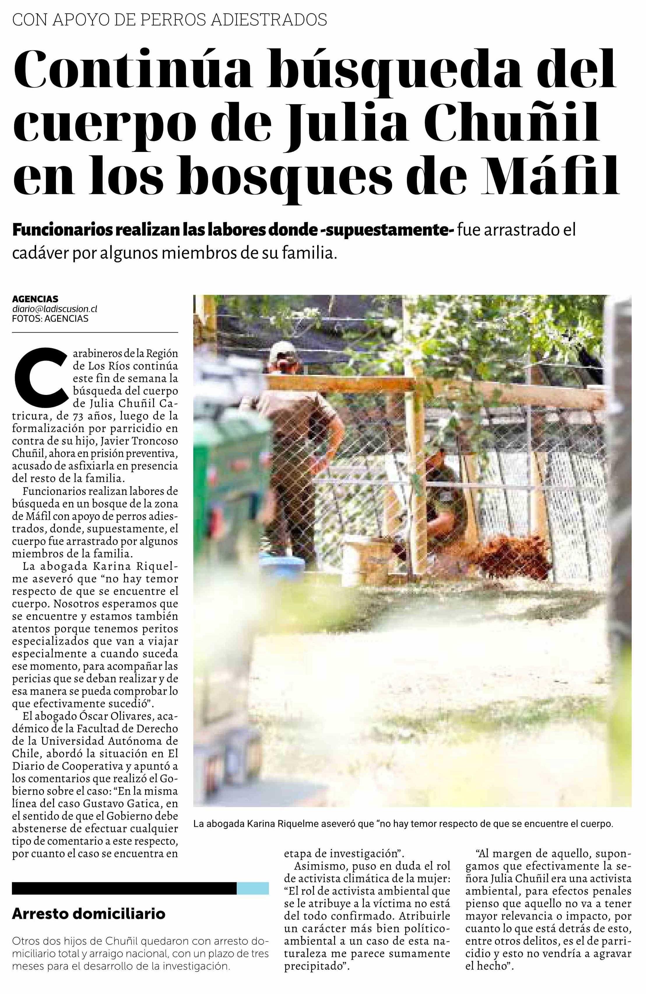 Título: Continúa búsqueda del cuerpo de Julia Chunil en los bosques de Máfil