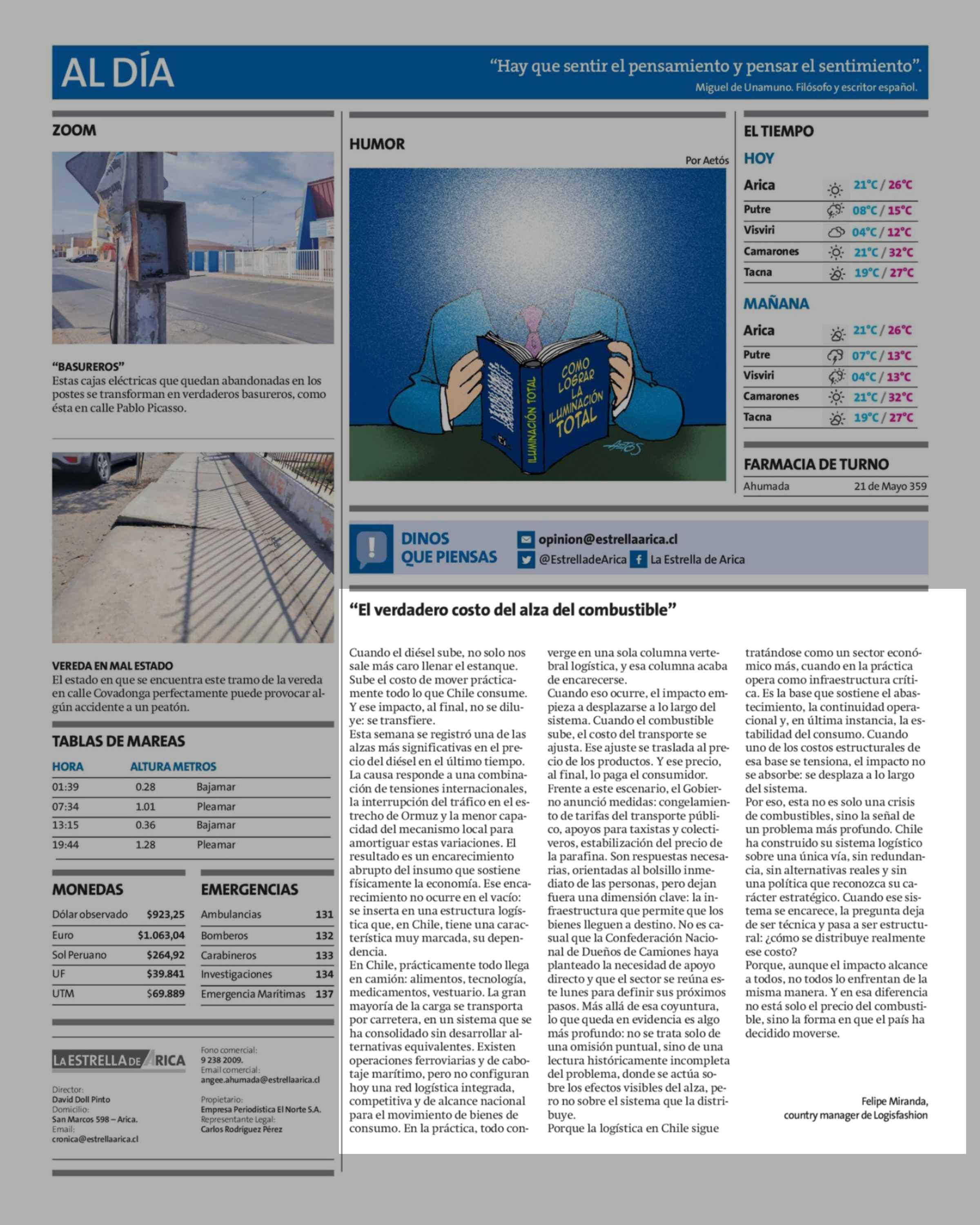 Fuente: La Estrella de Arica (La Estrella de Arica) Página(s): 6