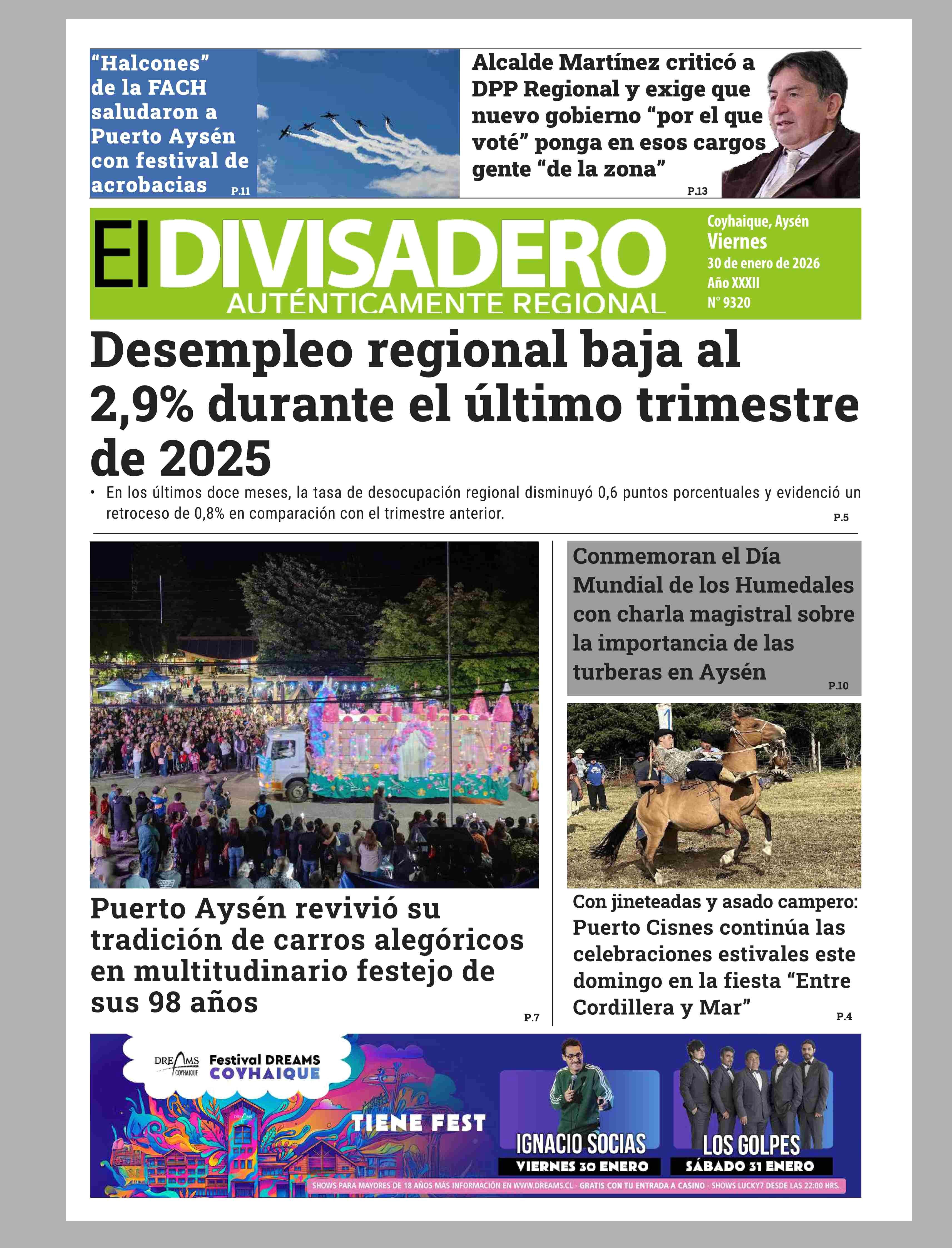 | Fecha: | 30-01-2026 | Sector: | Portada | Región: | Región Aysén del General Carlos Ibáñez del Campo |