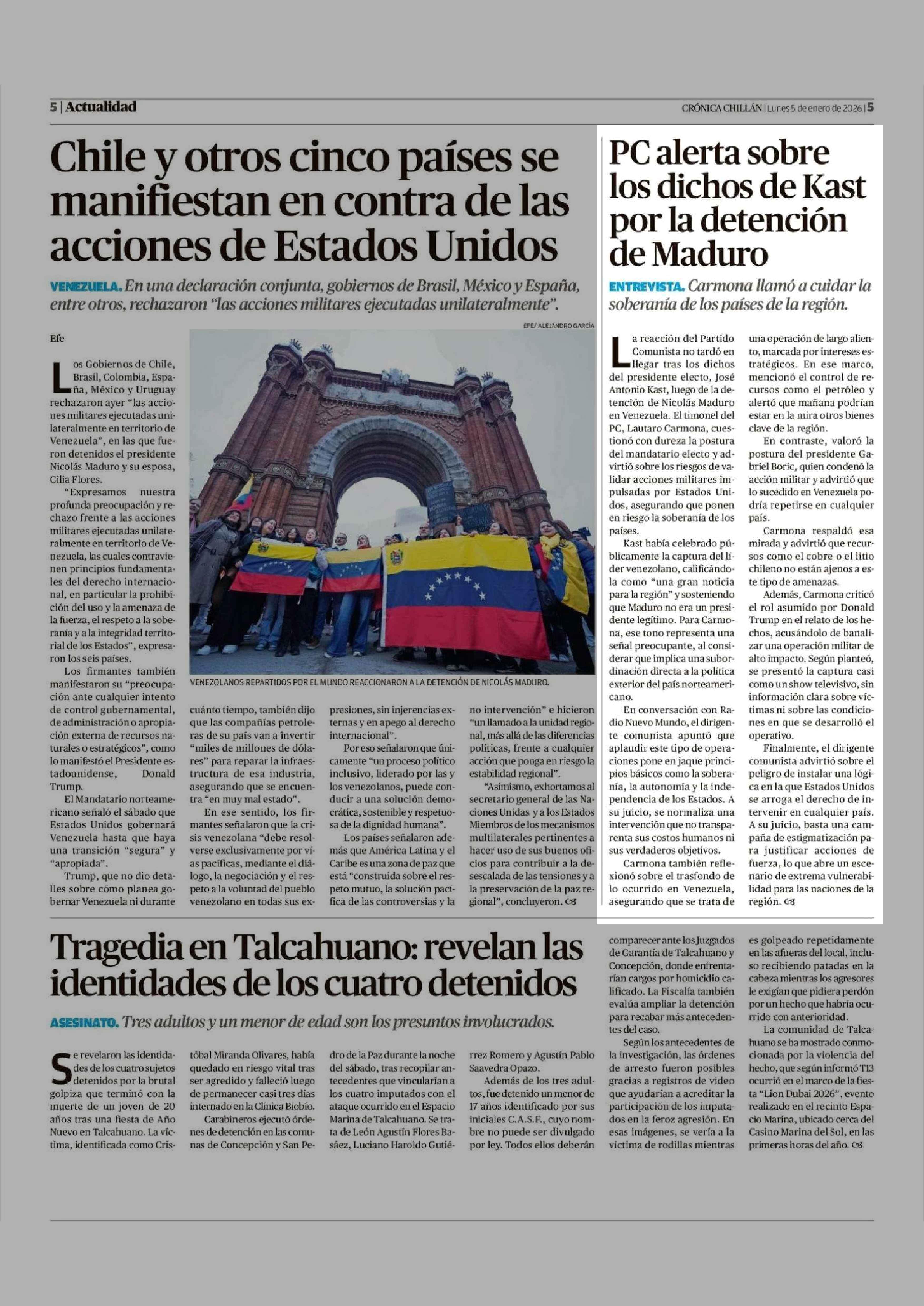PC alerta sobre los dichos de Kast por la detención de Maduro 05-01-2026 Crónica de Chillán |