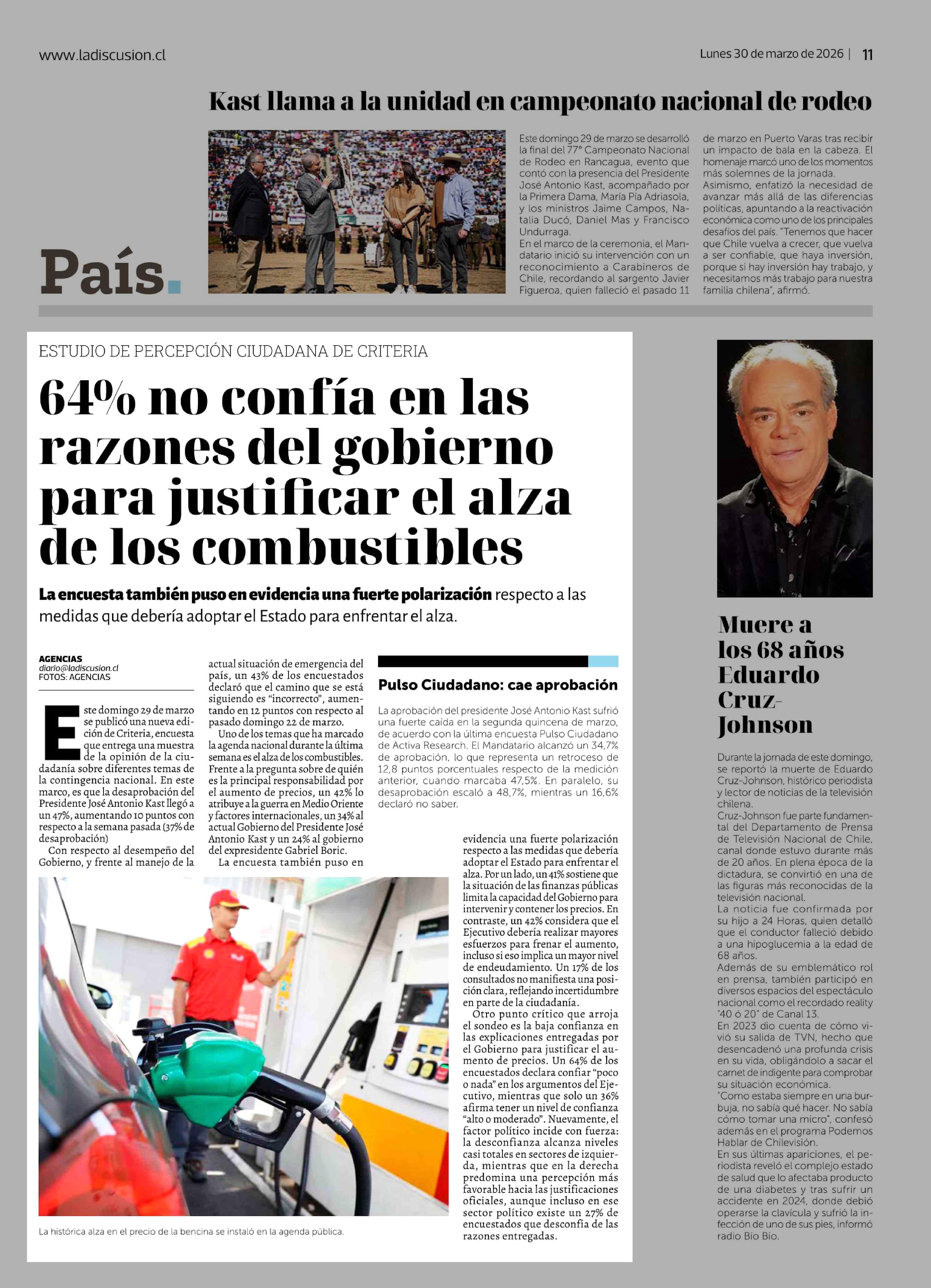 Título: 64% No confía en las razones del gobierno para justificar el alza de los combustibles