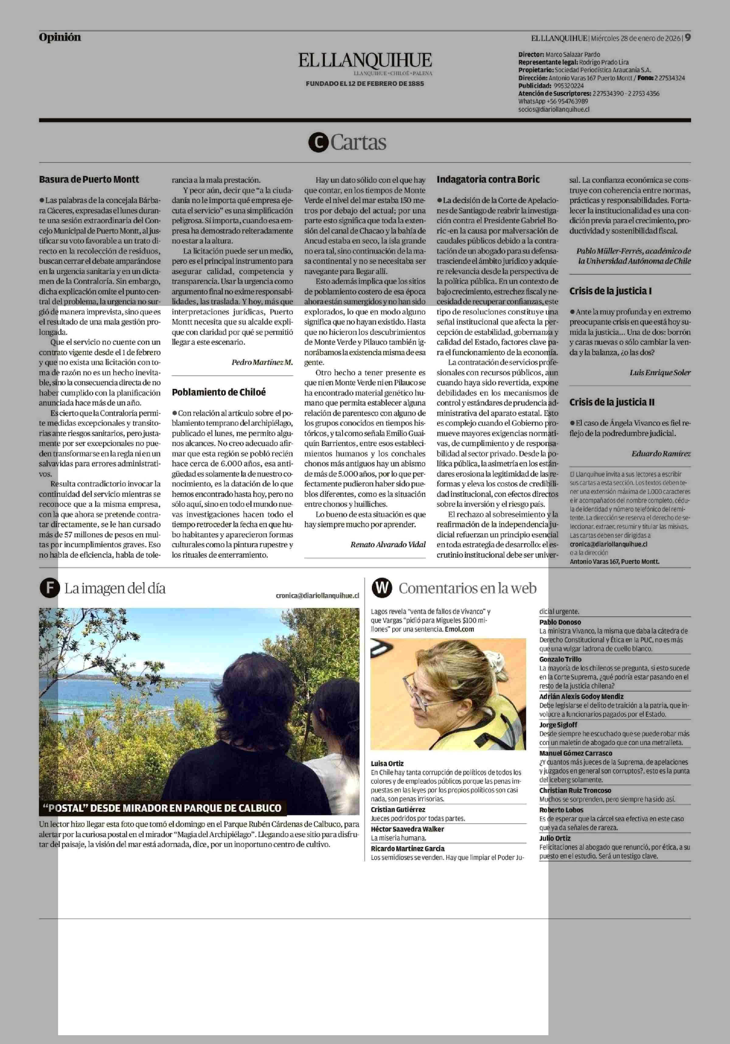 Cartas: Basura de Puerto Montt 28-01-2026 El Llanquihue |
