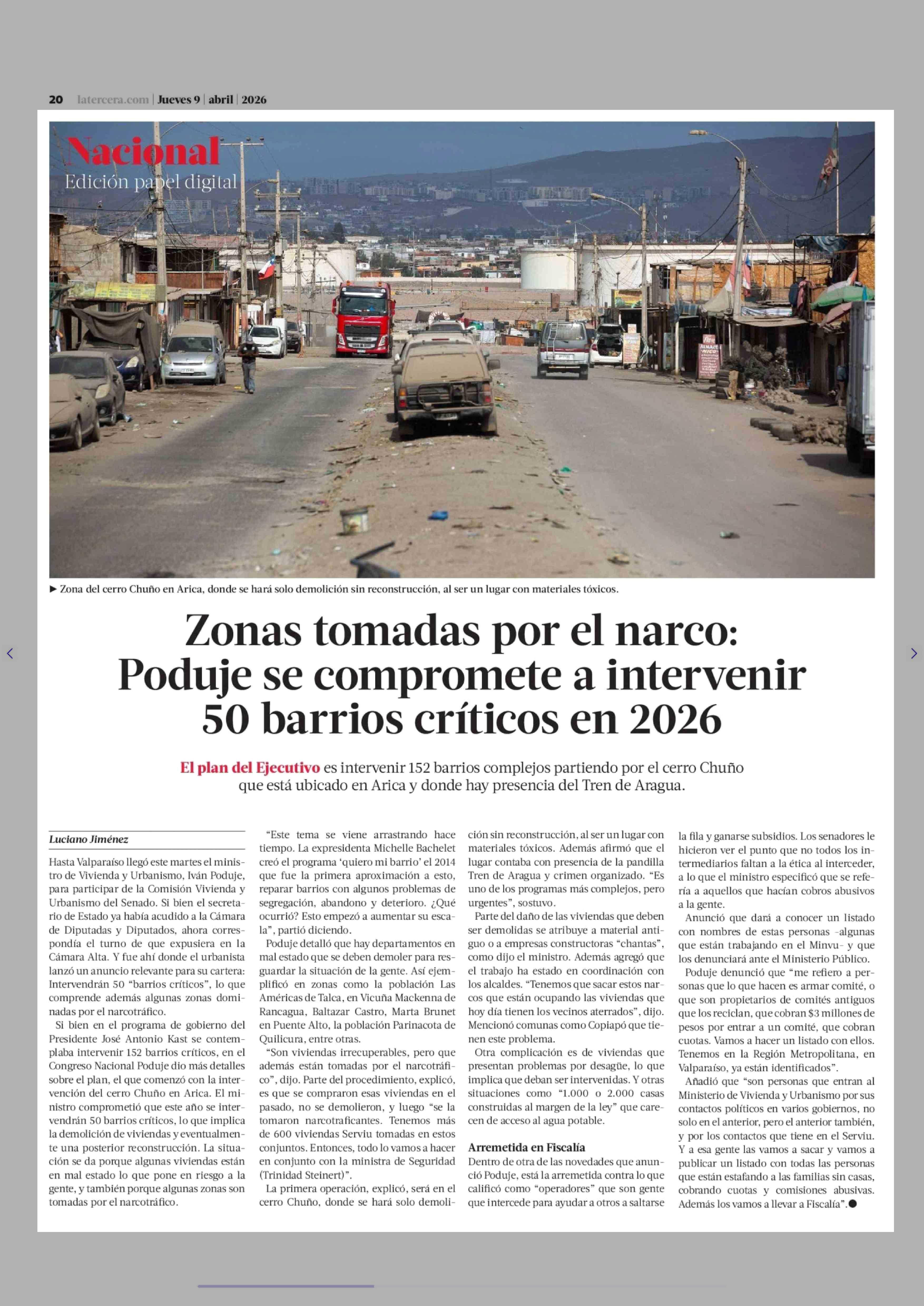 Título: Zonas tomadas por el narco: Poduje se compromete a intervenir 50 barrios críticos en 2026