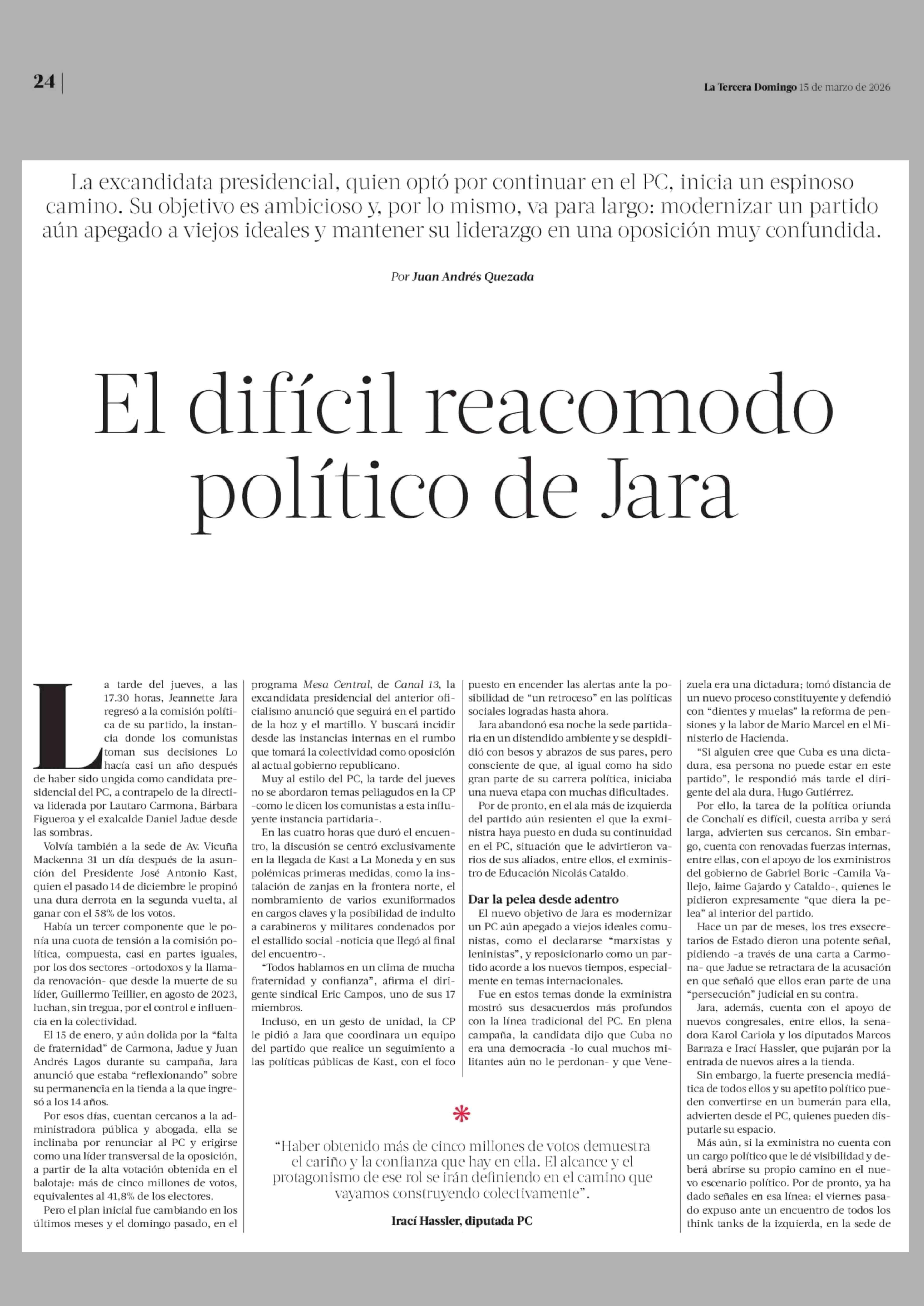 Título: El difícil reacomodo político de Jara