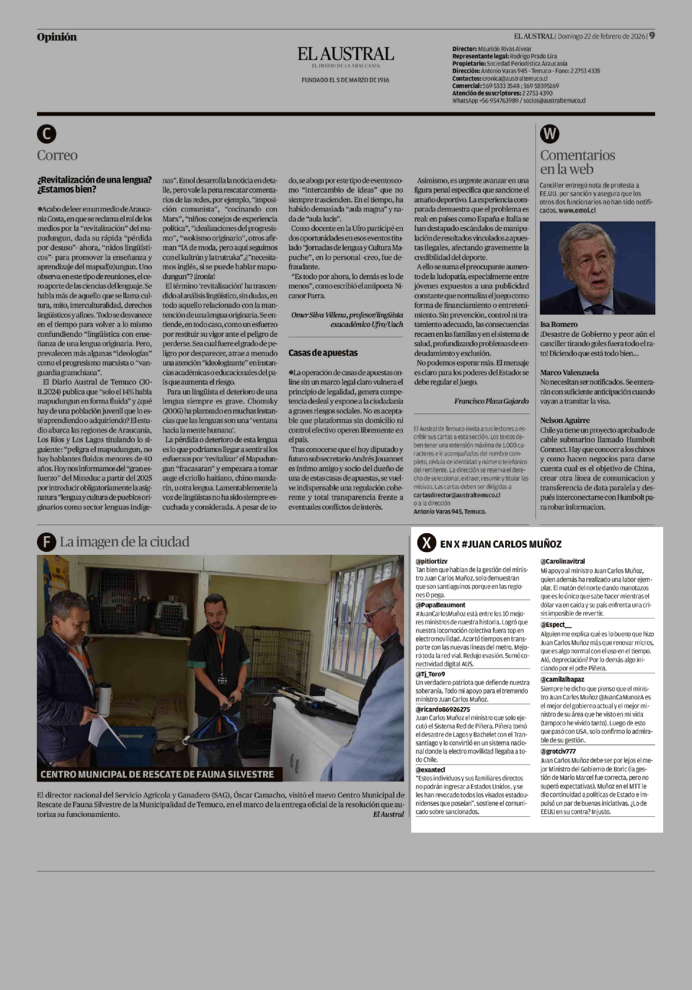 EN X JUAN CARLOS MUÑOZ 22-02-2026 El Austral de la Araucanía |