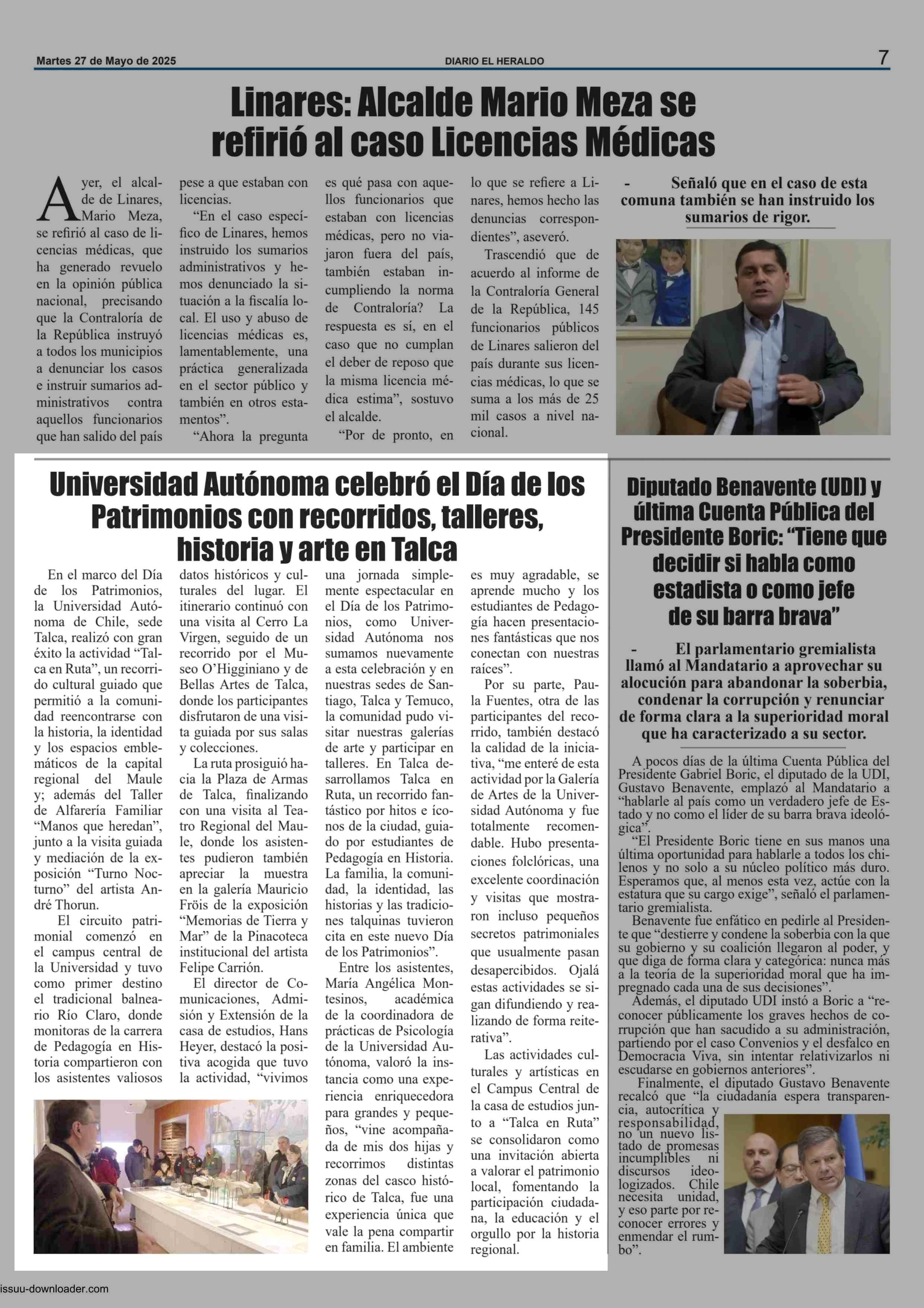 Universidad Autónoma celebró el Día de los Patrimonios con recorridos, talleres, historia y arte en Talca 27-05-2025 El Heraldo |