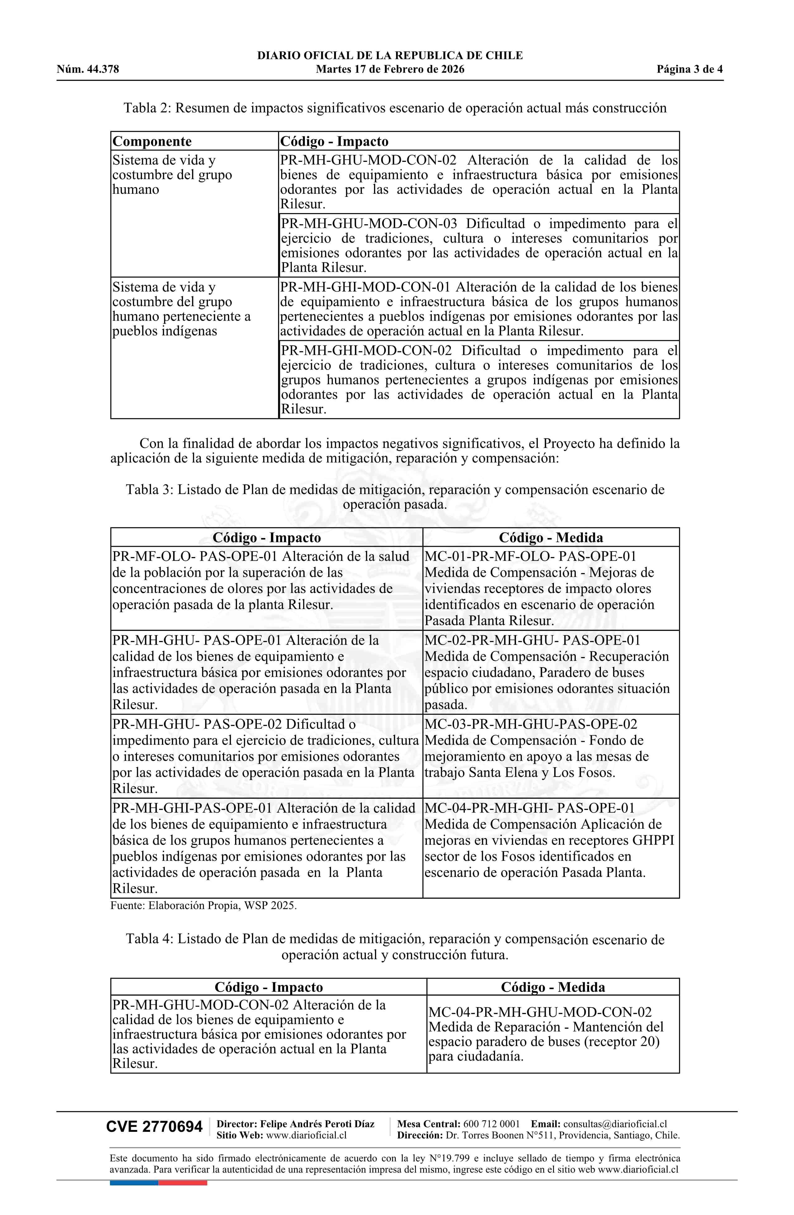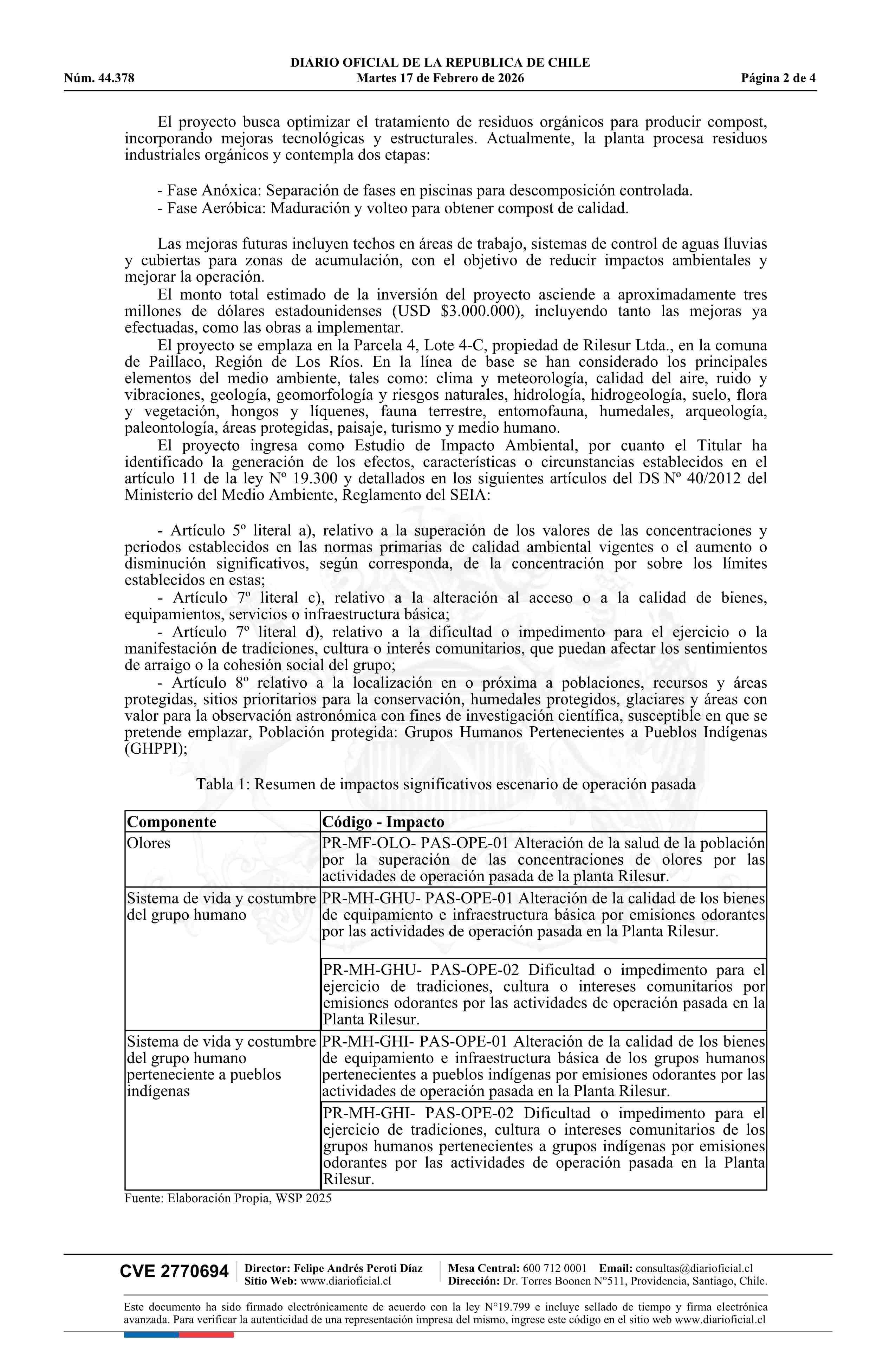 Extracto de Estudio de Impacto Ambiental del proyecto Modificación Planta de Valorización de Materiales Residuales Orgánicos, Rilesur Ltda. 17-02-2026 Diario Oficial Edición Electrónica |