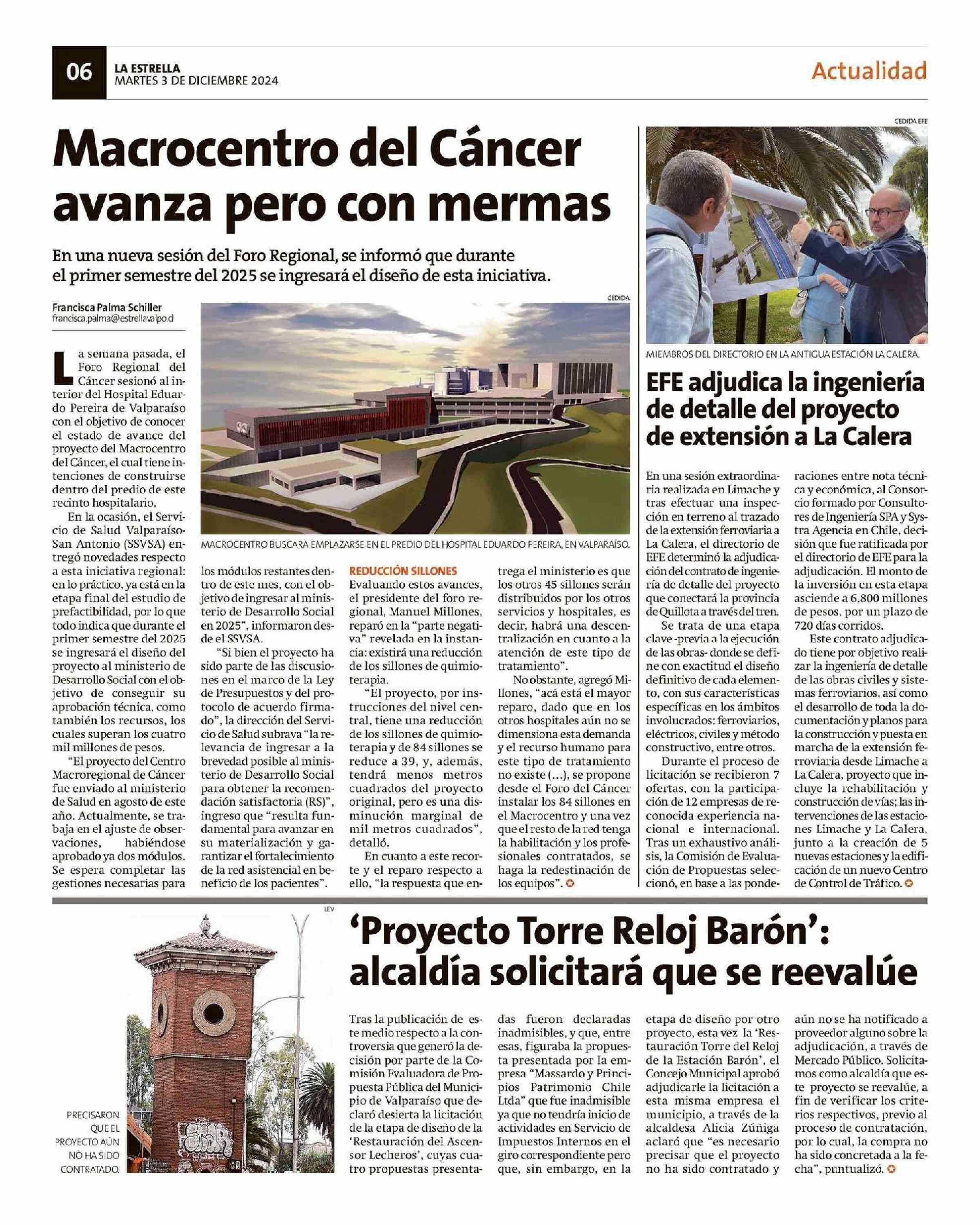 EFE adjudica la ingeniería de detalle del proyecto de extensión a La Calera 03-12-2024 La Estrella de Valparaíso |