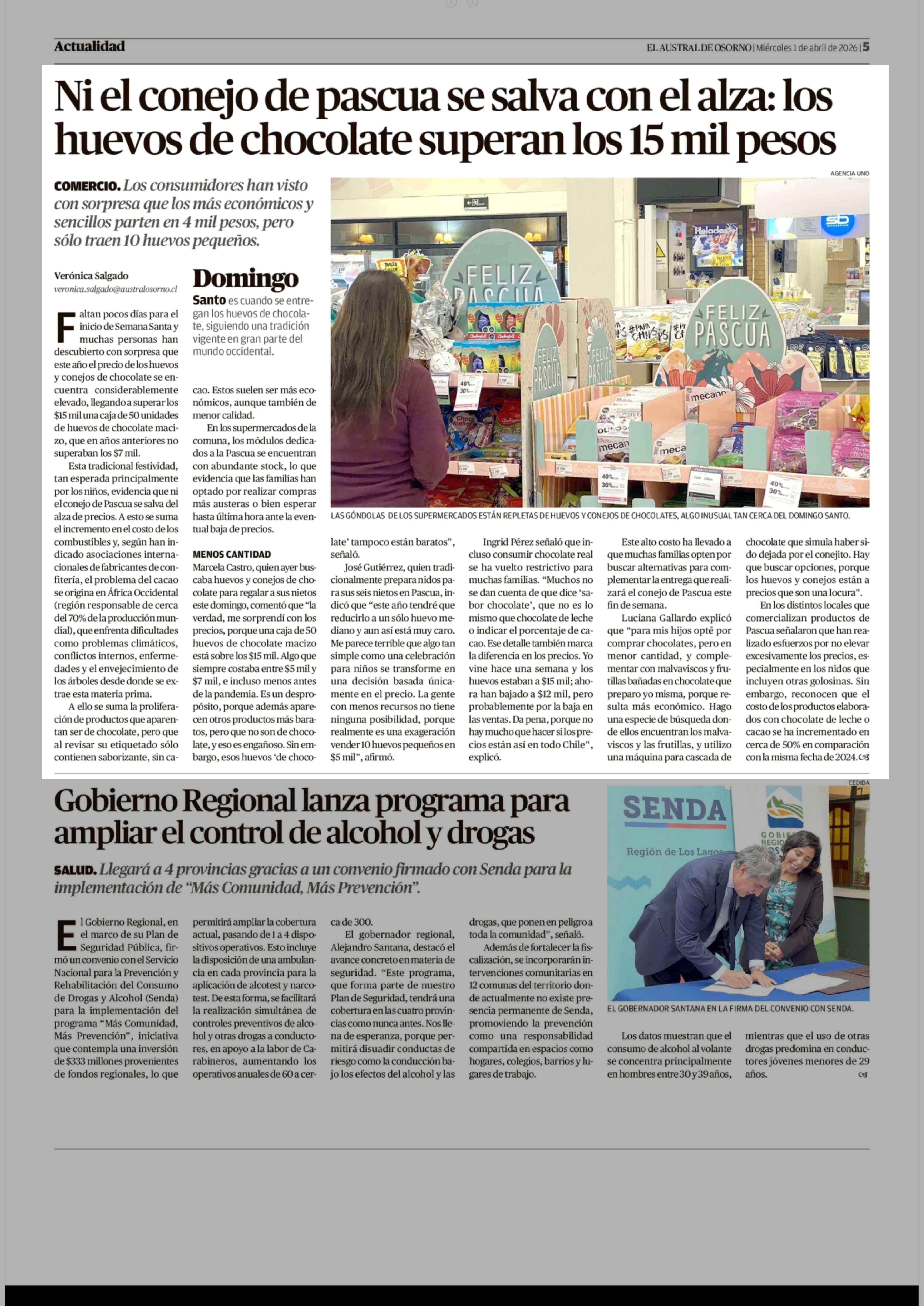 Fuente: El Austral de Osorno (El Austral de Osorno) Página(s): 5
