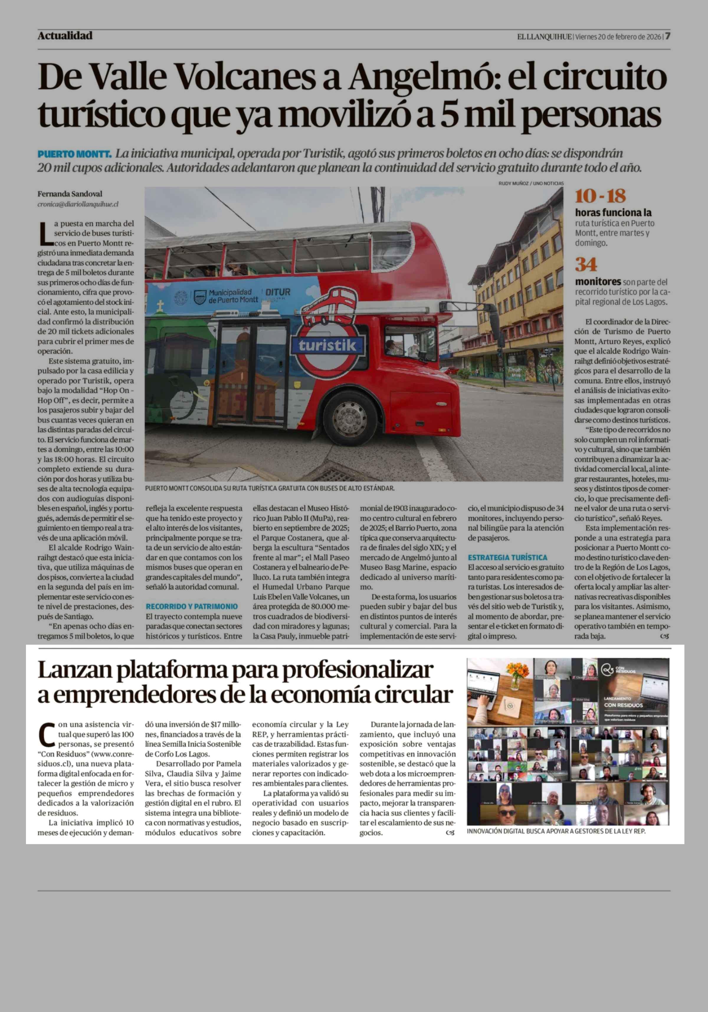 Lanzan plataforma para profesionalizar a emprendedores de la economía circular 20-02-2026 El Llanquihue |