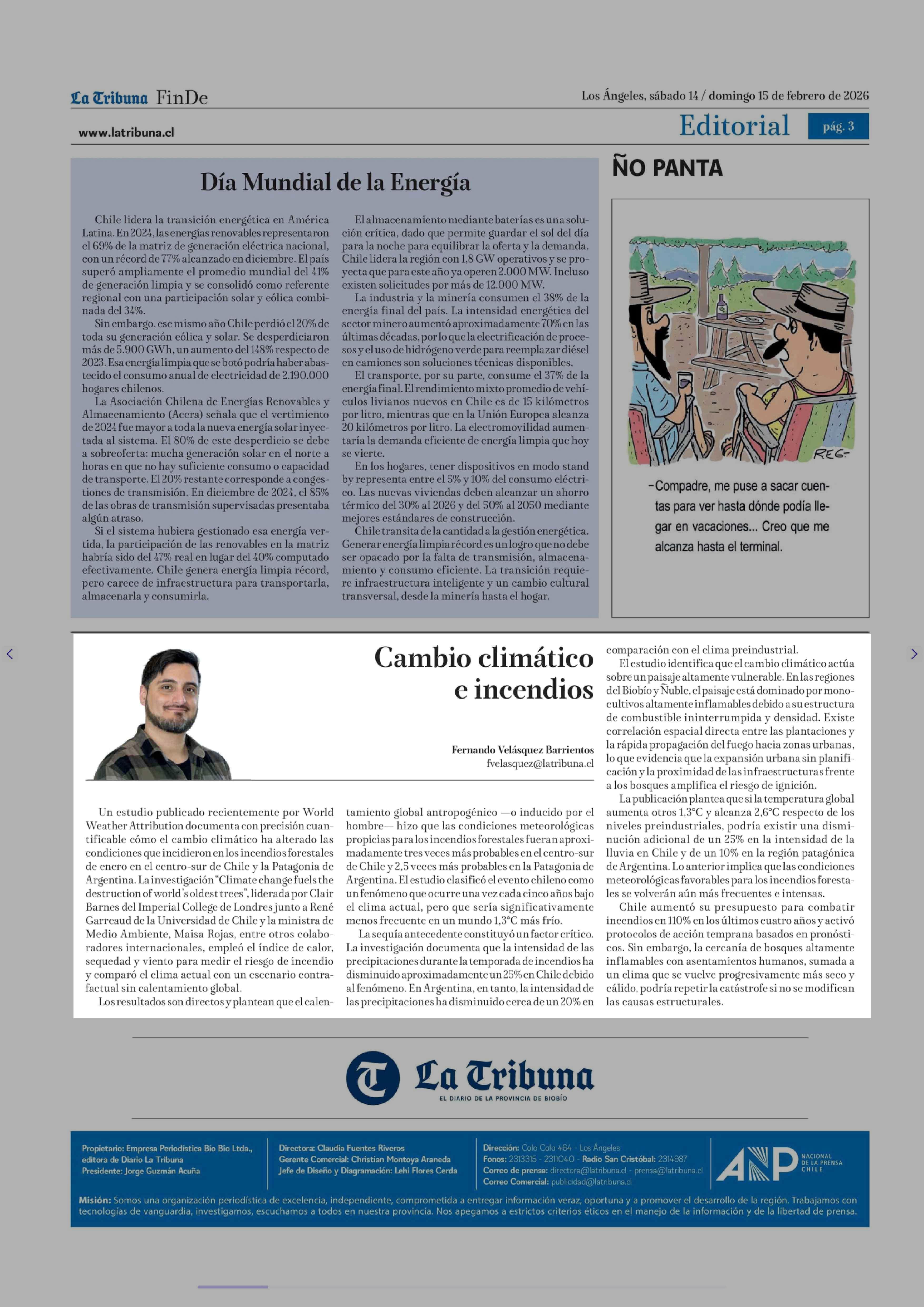 Editorial: Cambio climático e incendios 14-02-2026 La Tribuna |