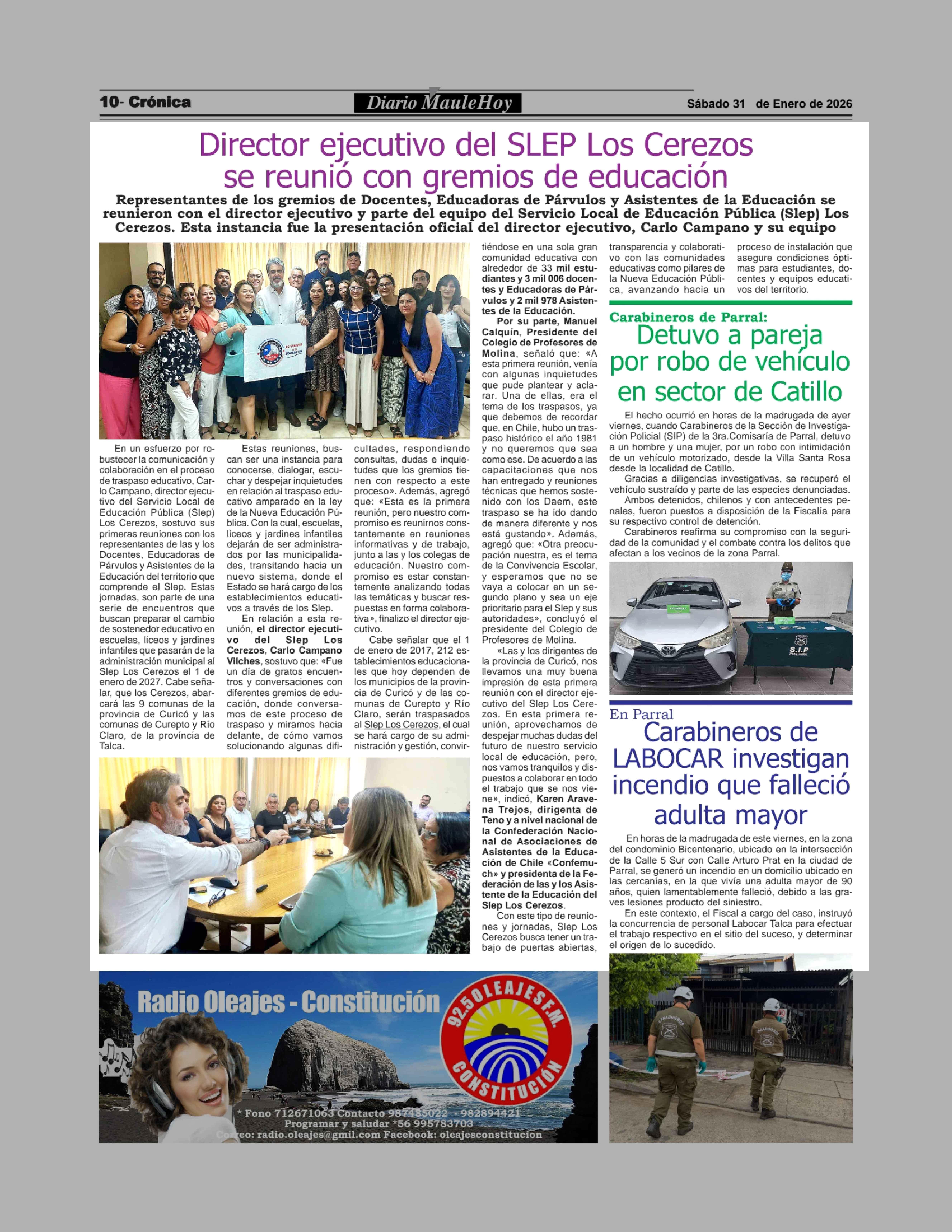 Director ejecutivo del SLEP Los Cerezos se reunió con gremios de educación 31-01-2026 Maule Hoy |