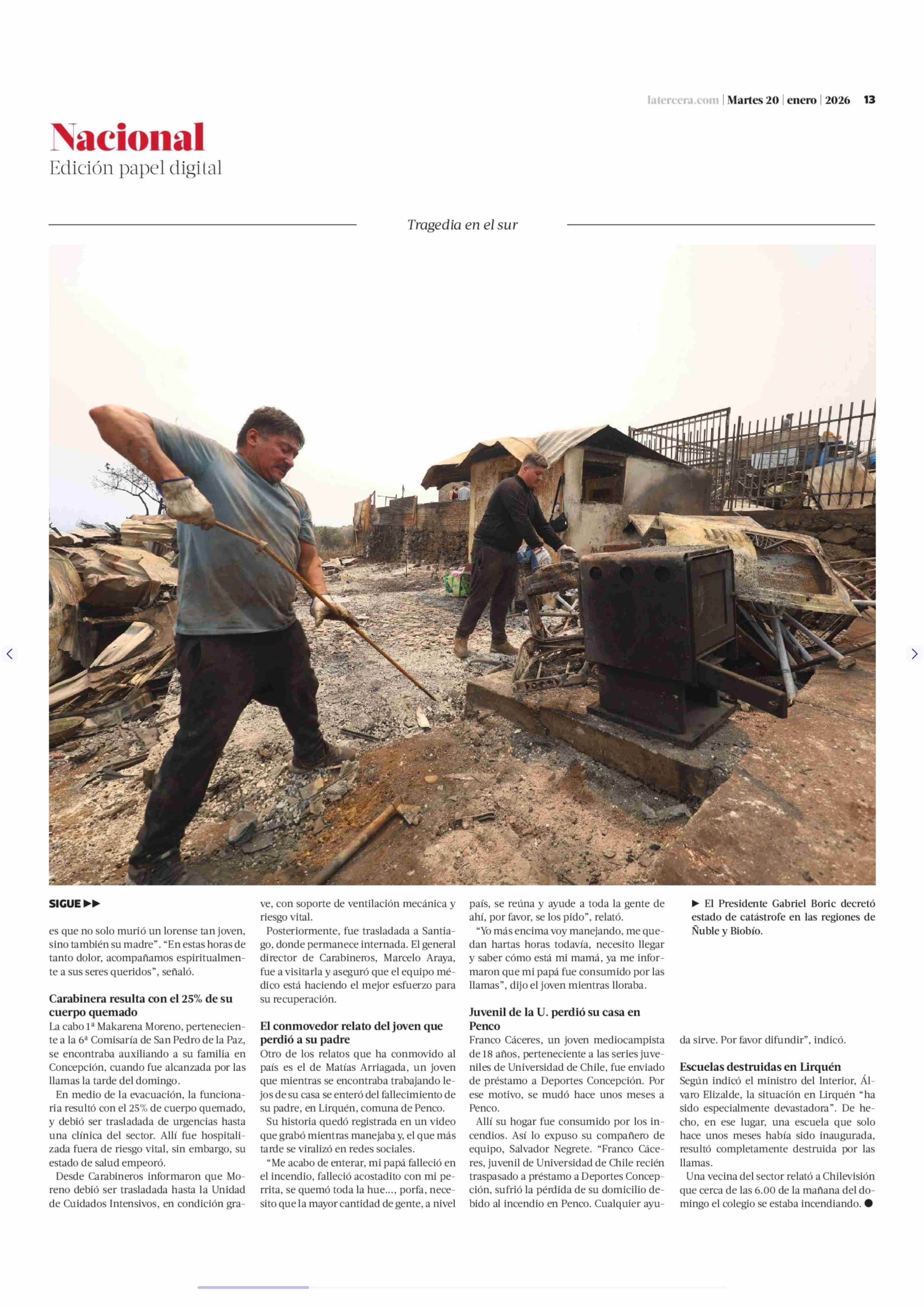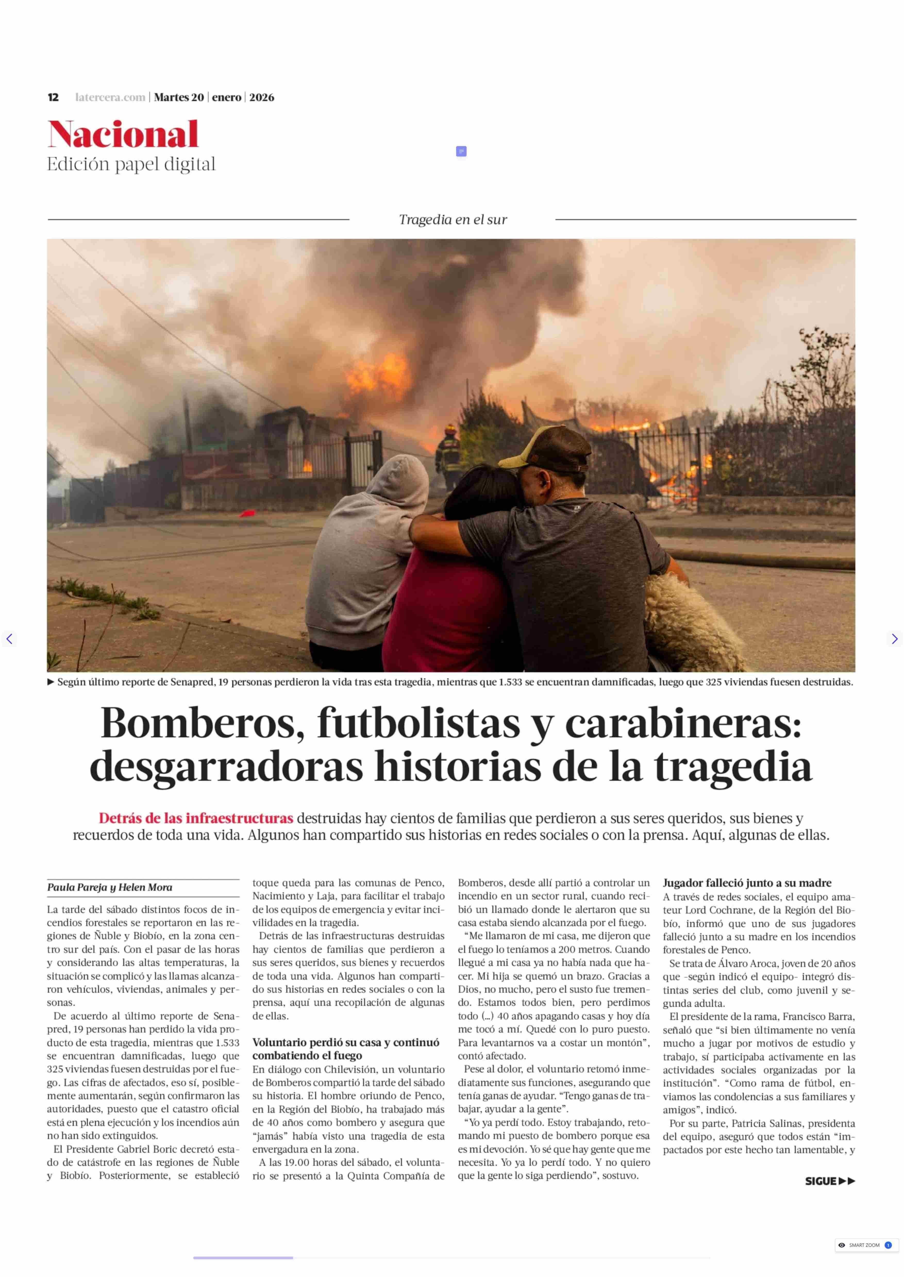 Bomberos, futbolistas y carabineras: desgarradoras historias de la tragedia 20-01-2026 La Tercera |