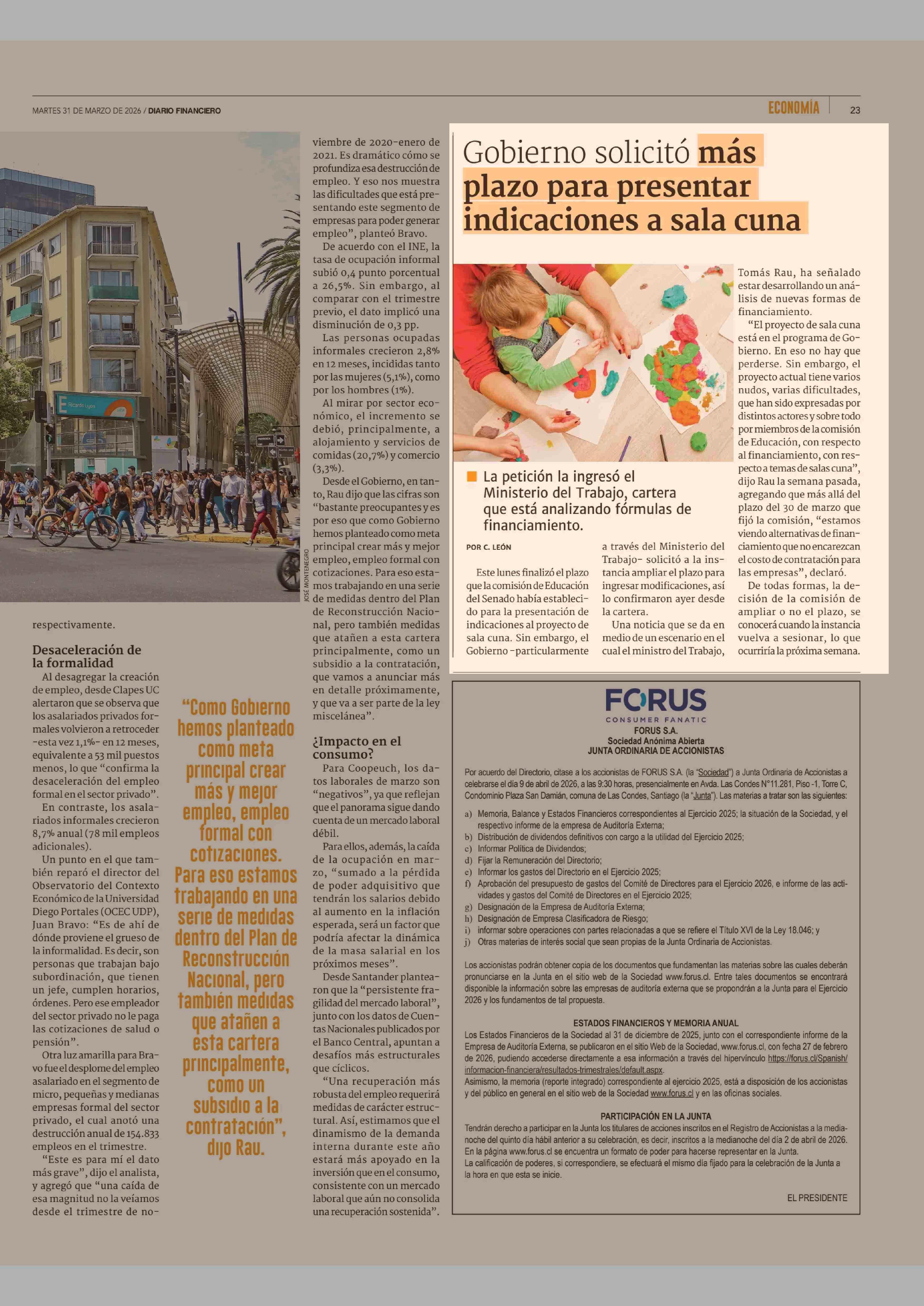 Gobierno solicitó más plazo para presentar indicaciones a sala cuna 31-03-2026 Diario Financiero |