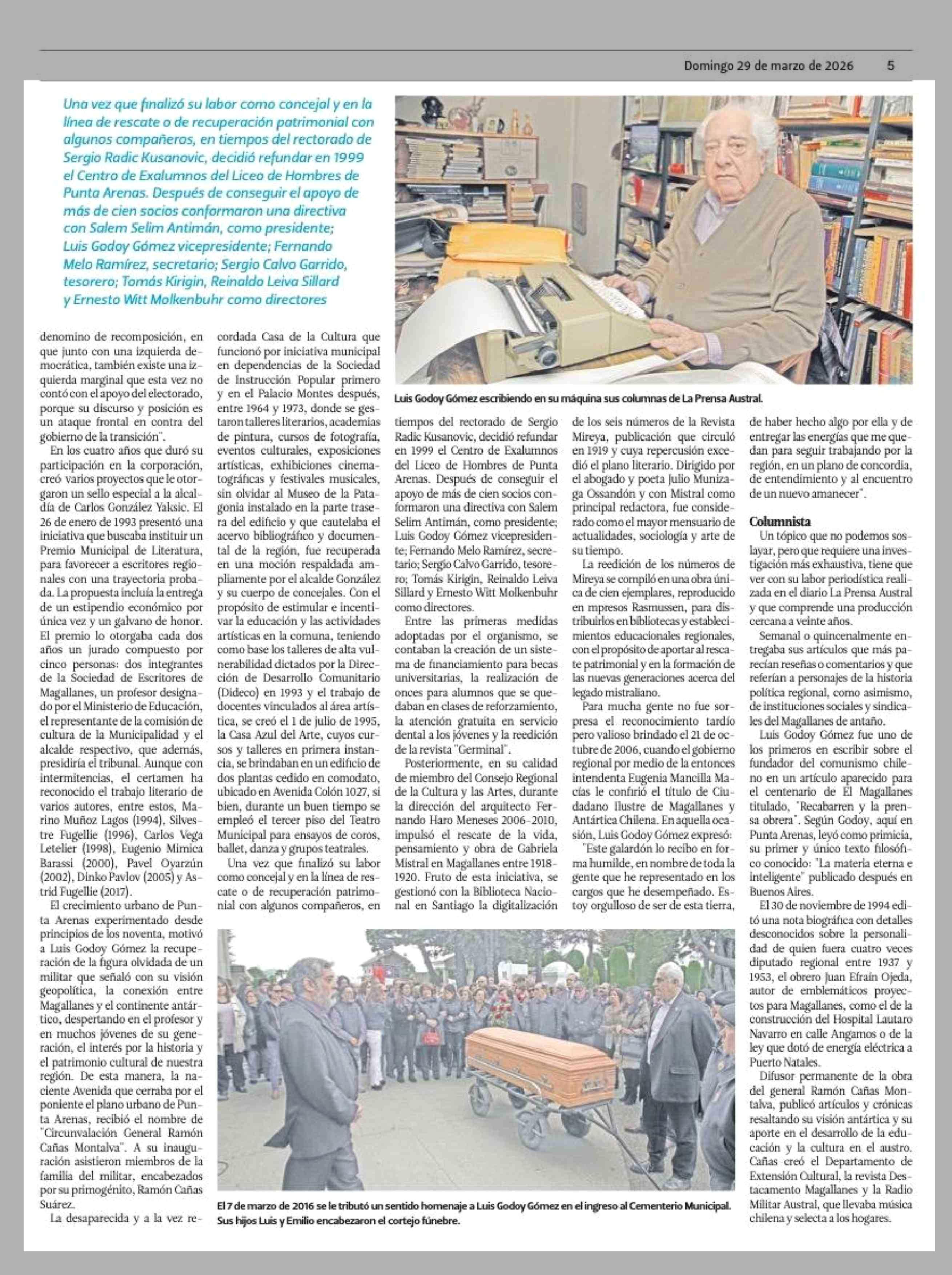 Luis Godoy Gómez: su relegación, su regreso al municipio y su aporte como columnista en La Prensa Austral 29-03-2026 El Magallanes |