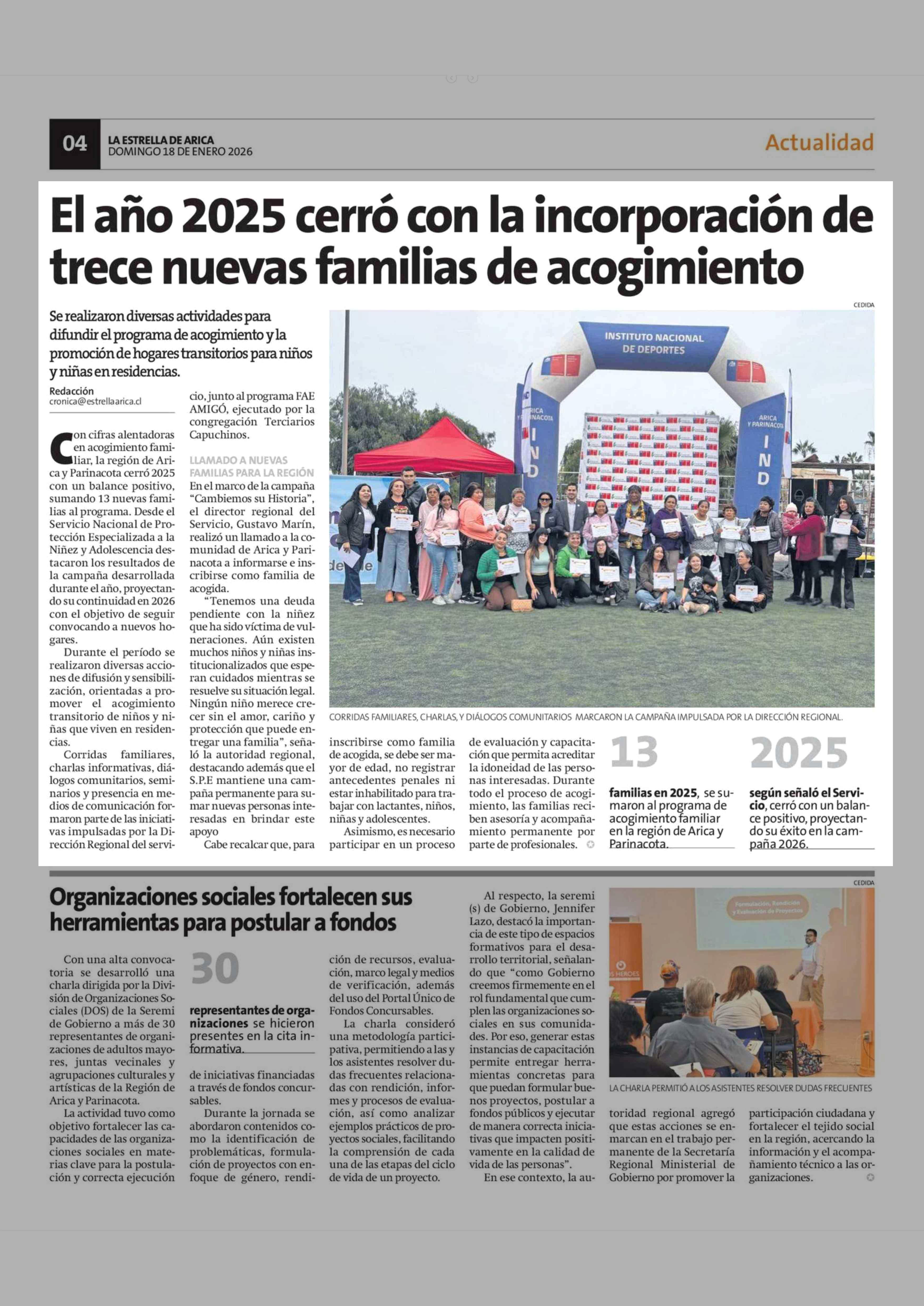 Fecha: 18-01-2026 Sector: Noticia general Región: Región de Arica y Parinacota