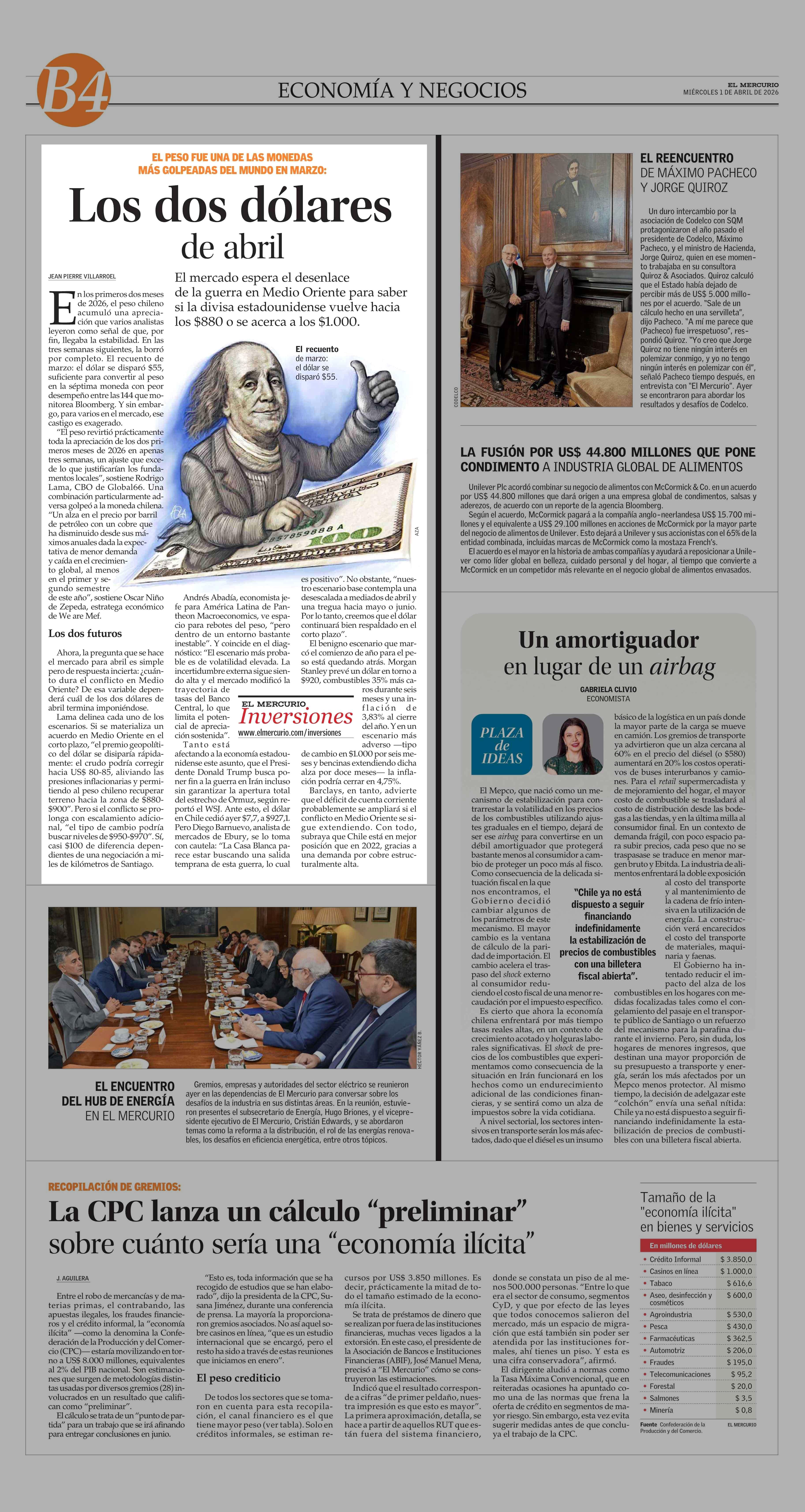 Los dos dólares de abril 01-04-2026 El Mercurio |