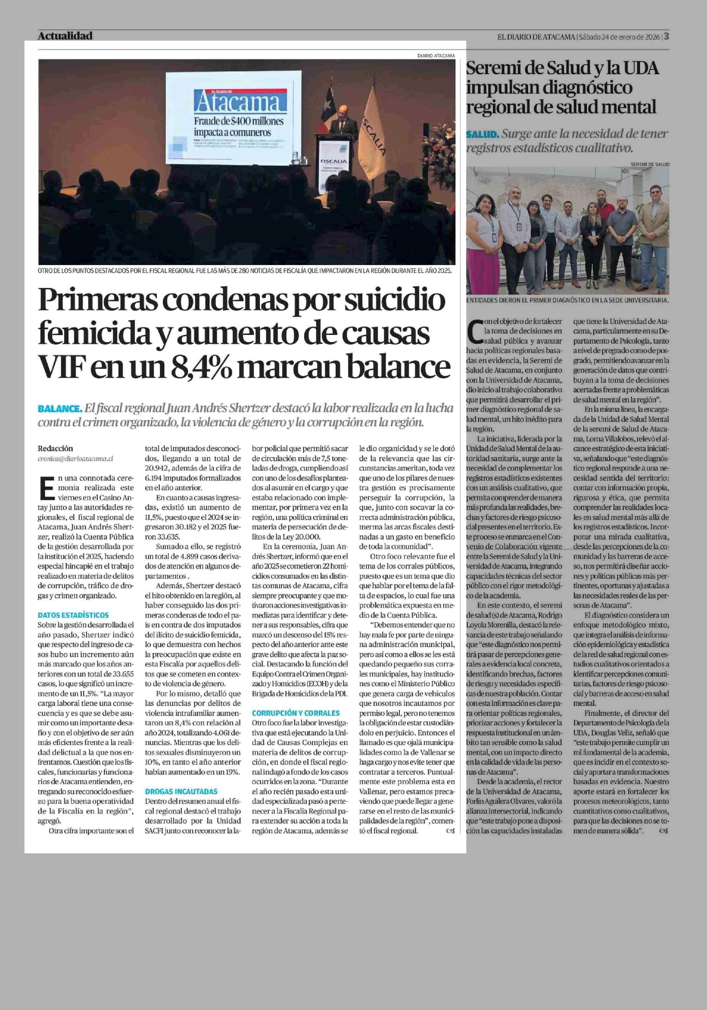 Primeras condenas por suicidio femicida y aumento de causas VIF en un 8,4% marcan balance 24-01-2026 El Diario de Atacama |
