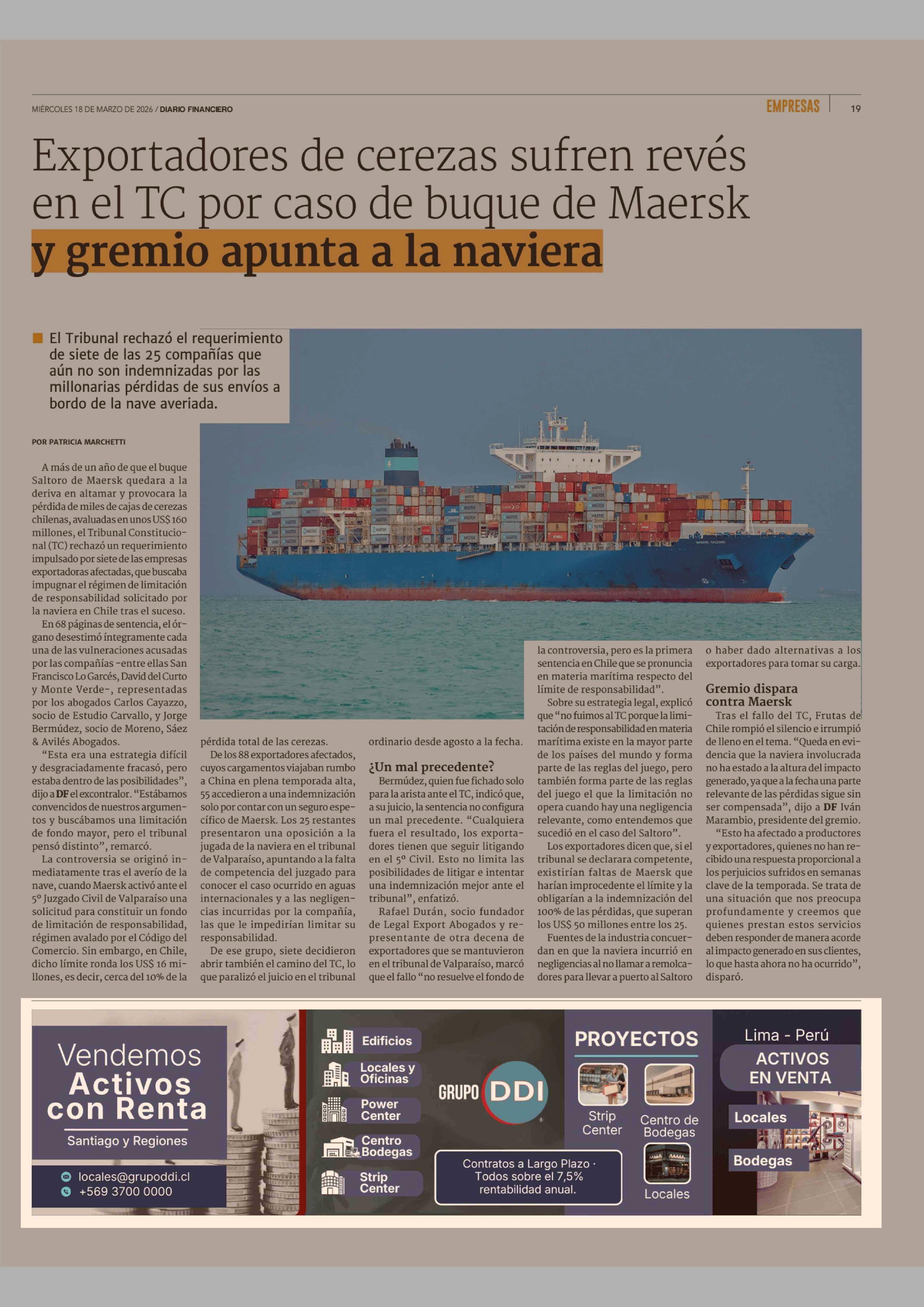 Fuente: Diario Financiero (Diario Financiero) Página(s): 19