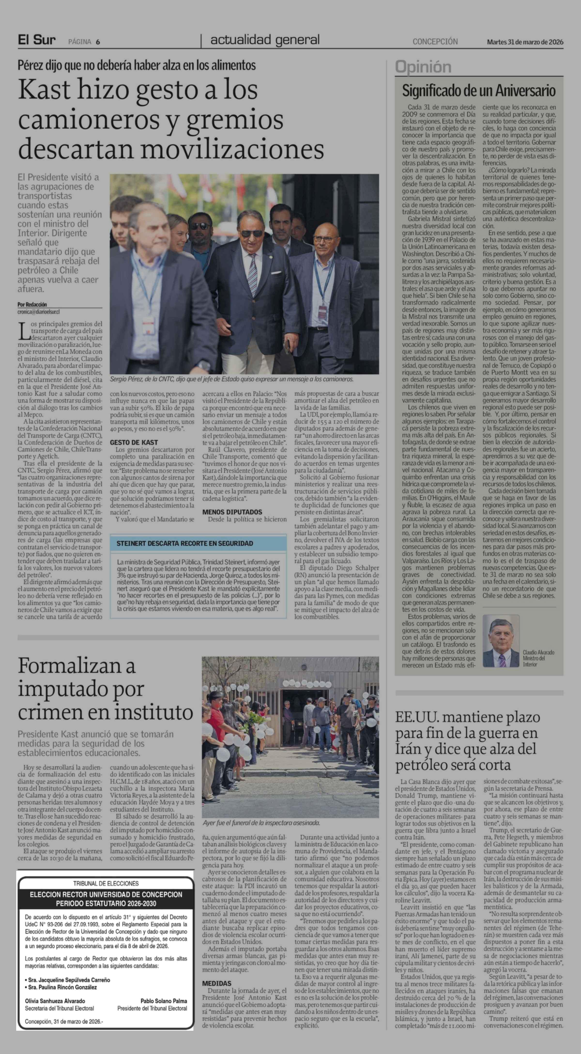 EXTRACTO TRIBUNAL DE ELECCIONES ELECCION RECTOR UNIVERSIDAD DE CONCEPCION 31-03-2026 El Sur |