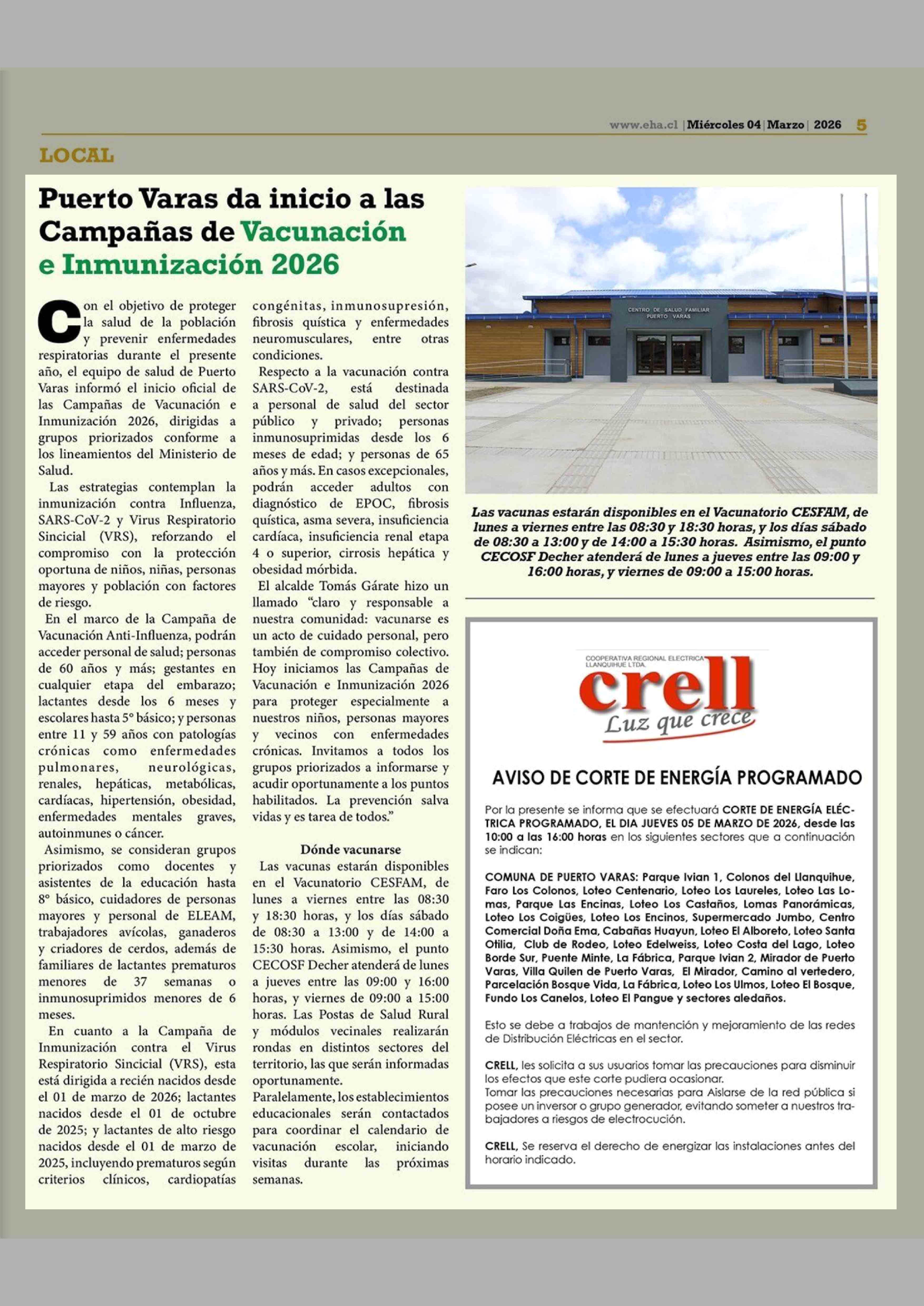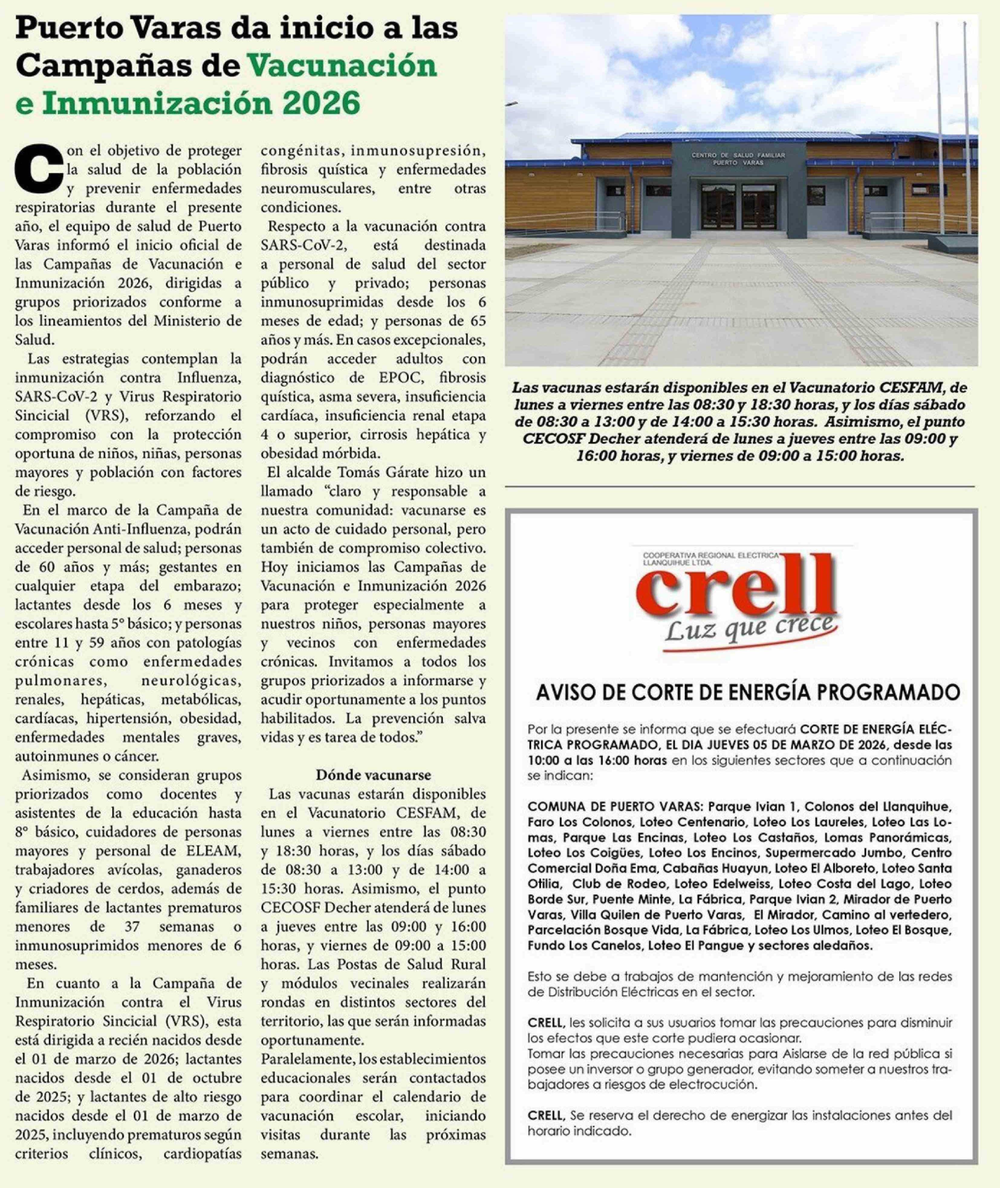 Título: Puerto Varas da inicio a las Campañas de Vacunación e Inmunización 2026