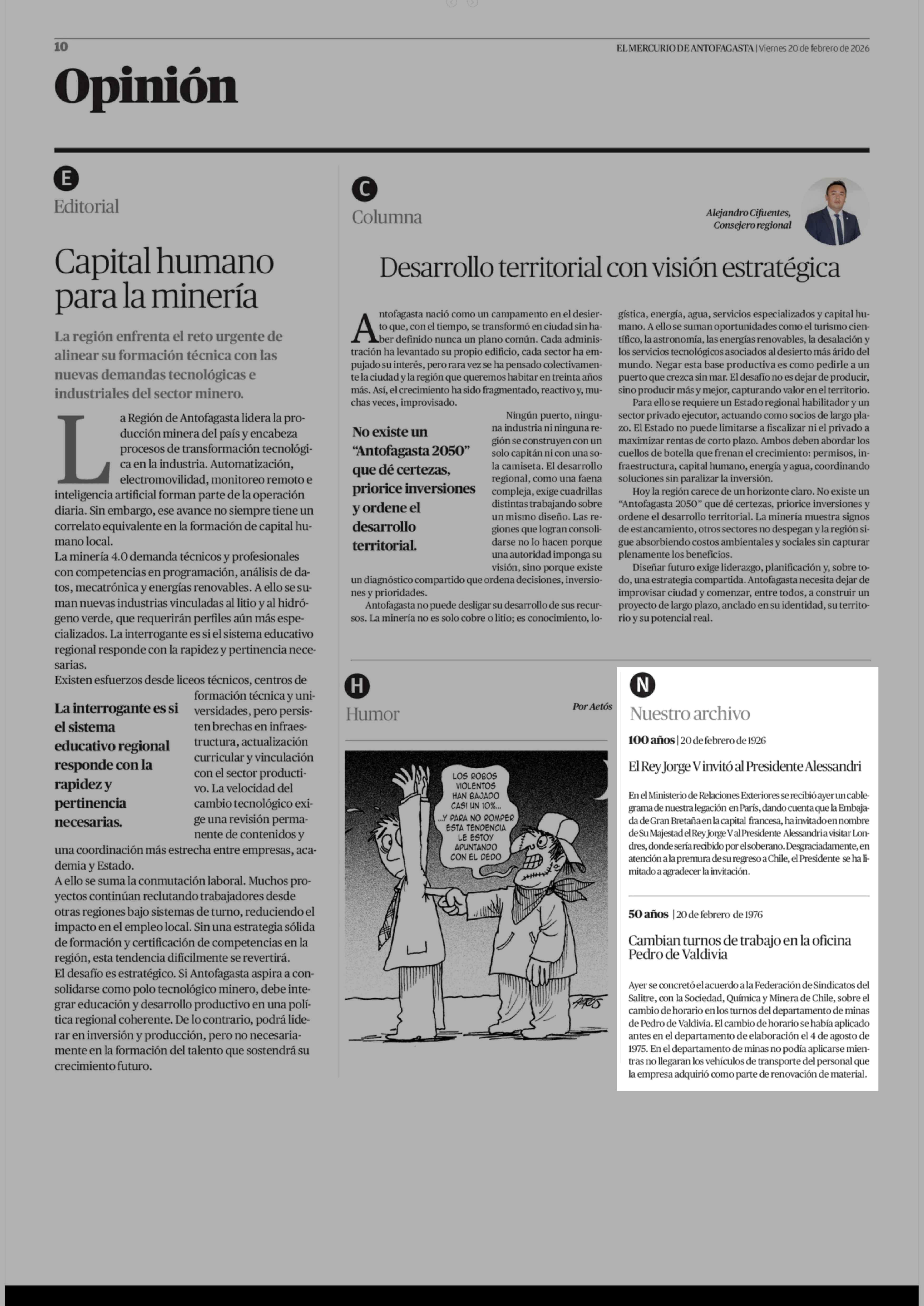 Nuestro archivo 20-02-2026 El Mercurio de Antofagasta |