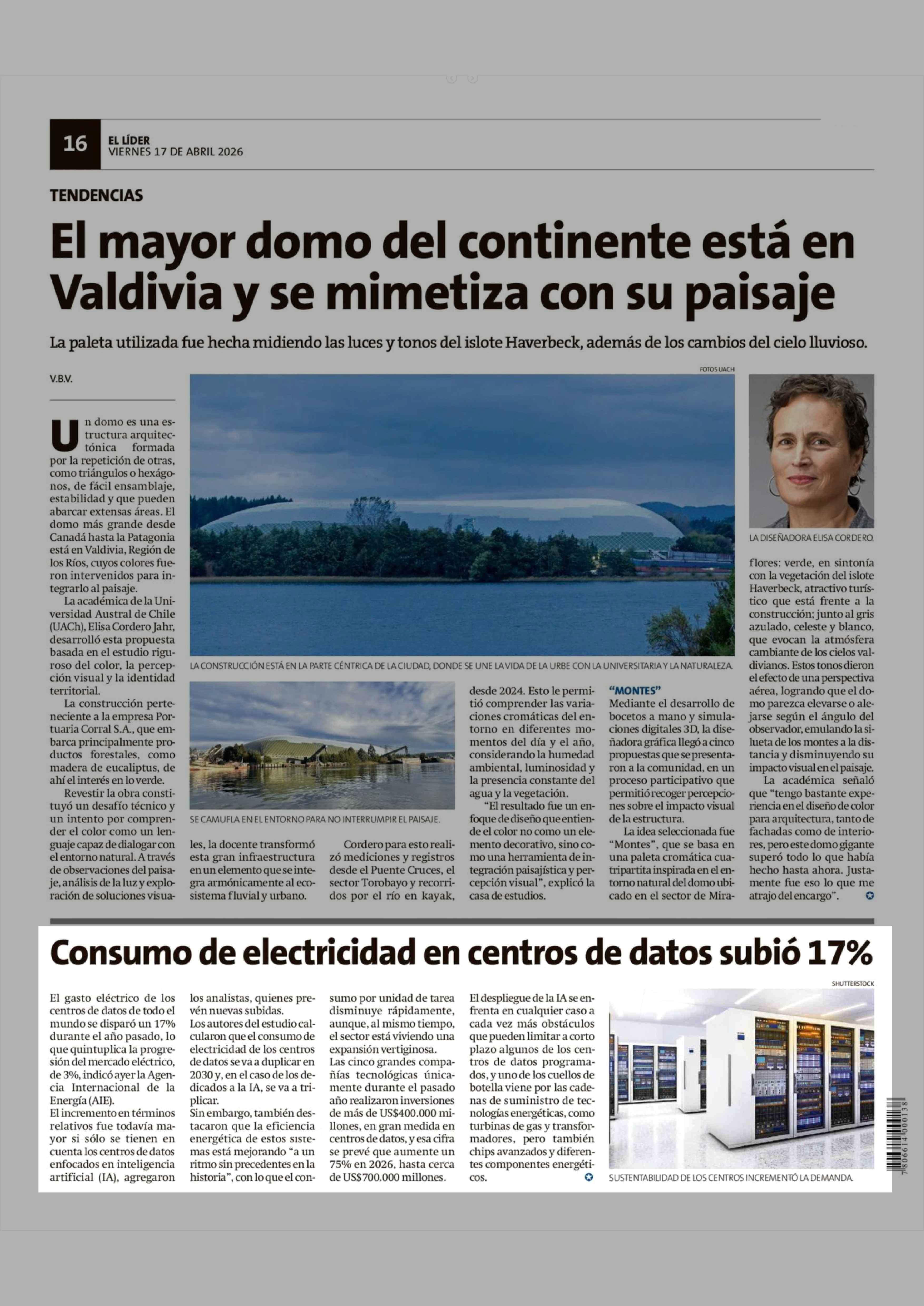 Consumo de electricidad en centros de datos subió 17% 17-04-2026 El Líder |