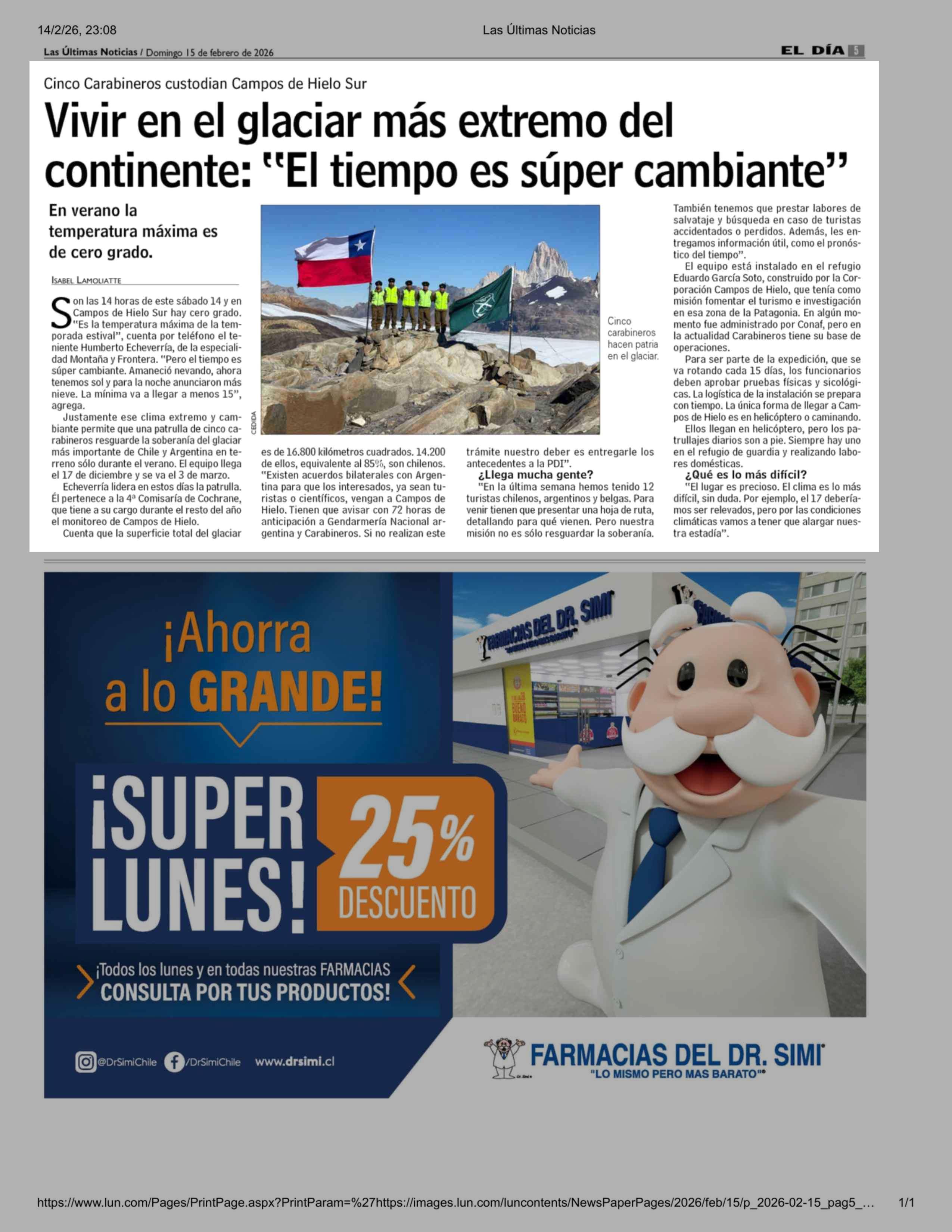 Vivir en el glaciar más extremo del continente: "El tiempo es super cambiante" 15-02-2026 Las Últimas Noticias |