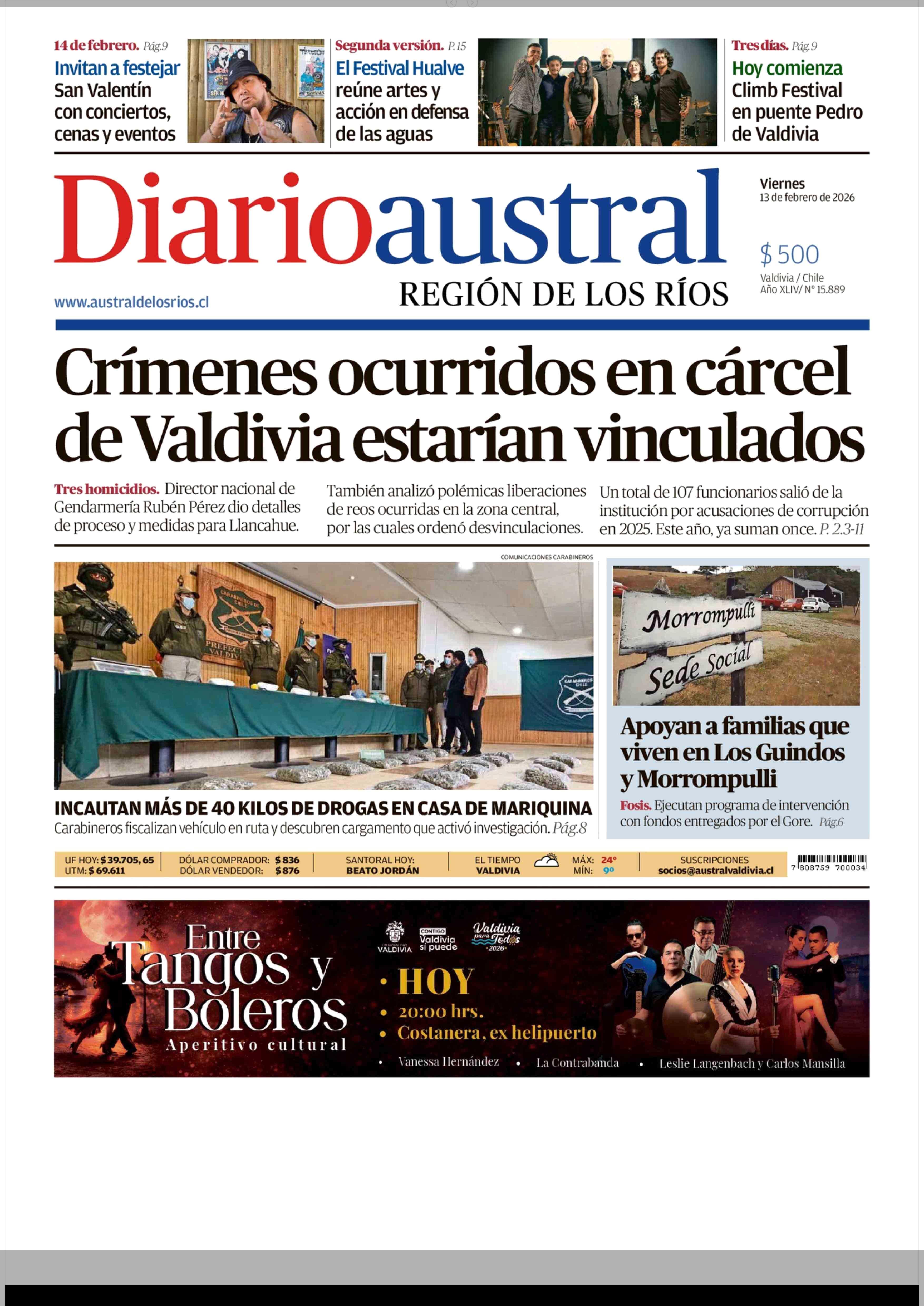 | Fecha: | 13-02-2026 | Sector: | Portada | Región: | Región de Los Ríos |